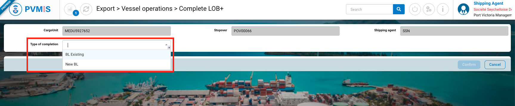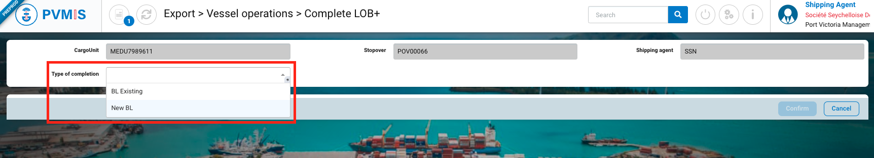 The CargoUnit LOB+ (Loaded On Board) is included in a new BL.