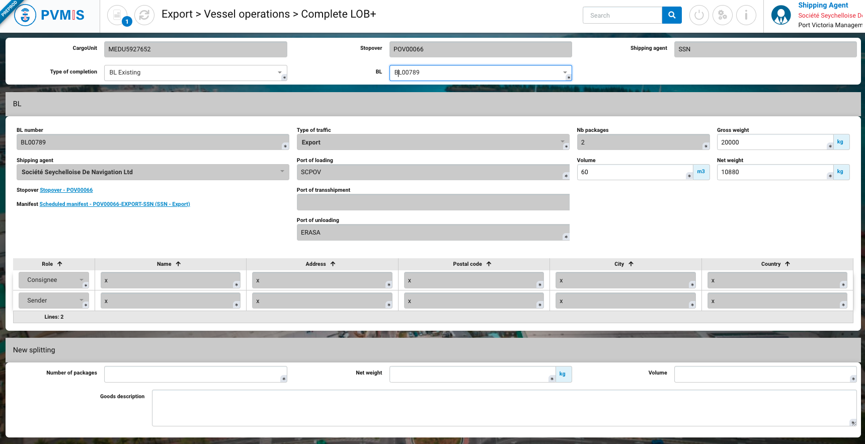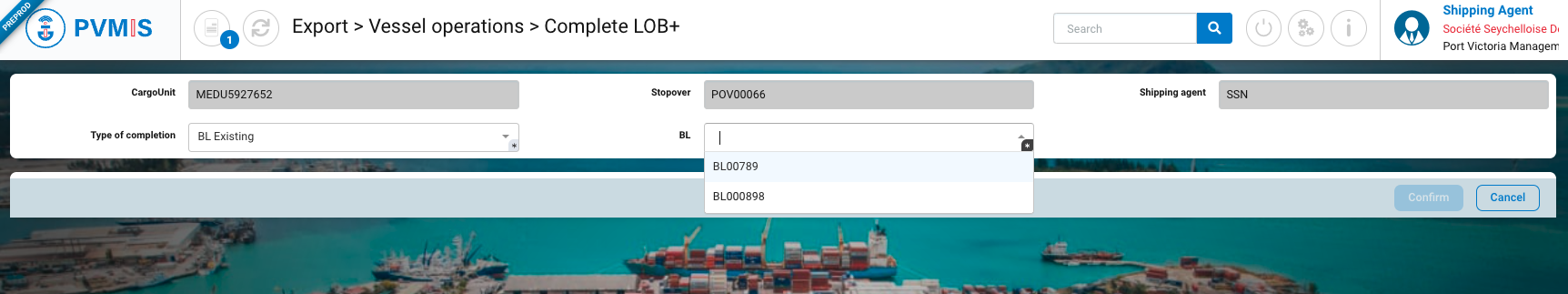 The agent must then indicate which Bill of Lading is linked to this CargoUnit, mainly to inform customs of the contents and third parties linked to this new CargoUnit.