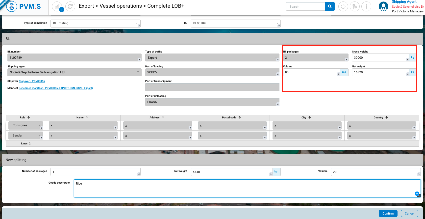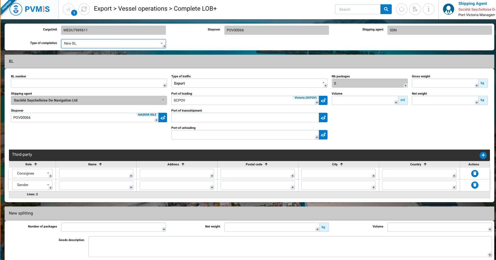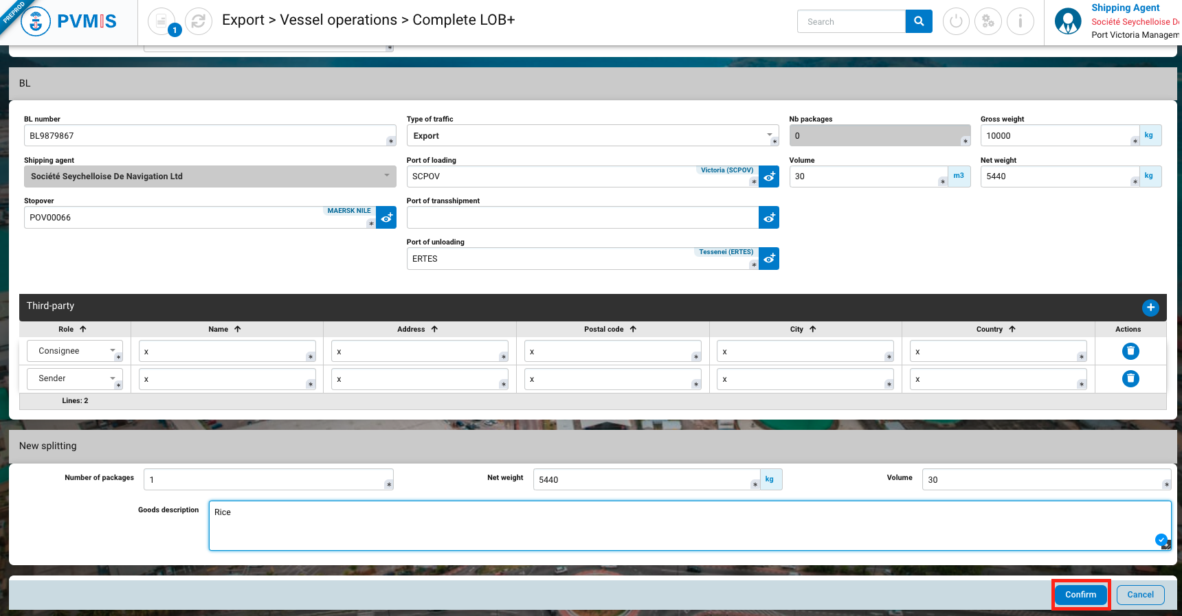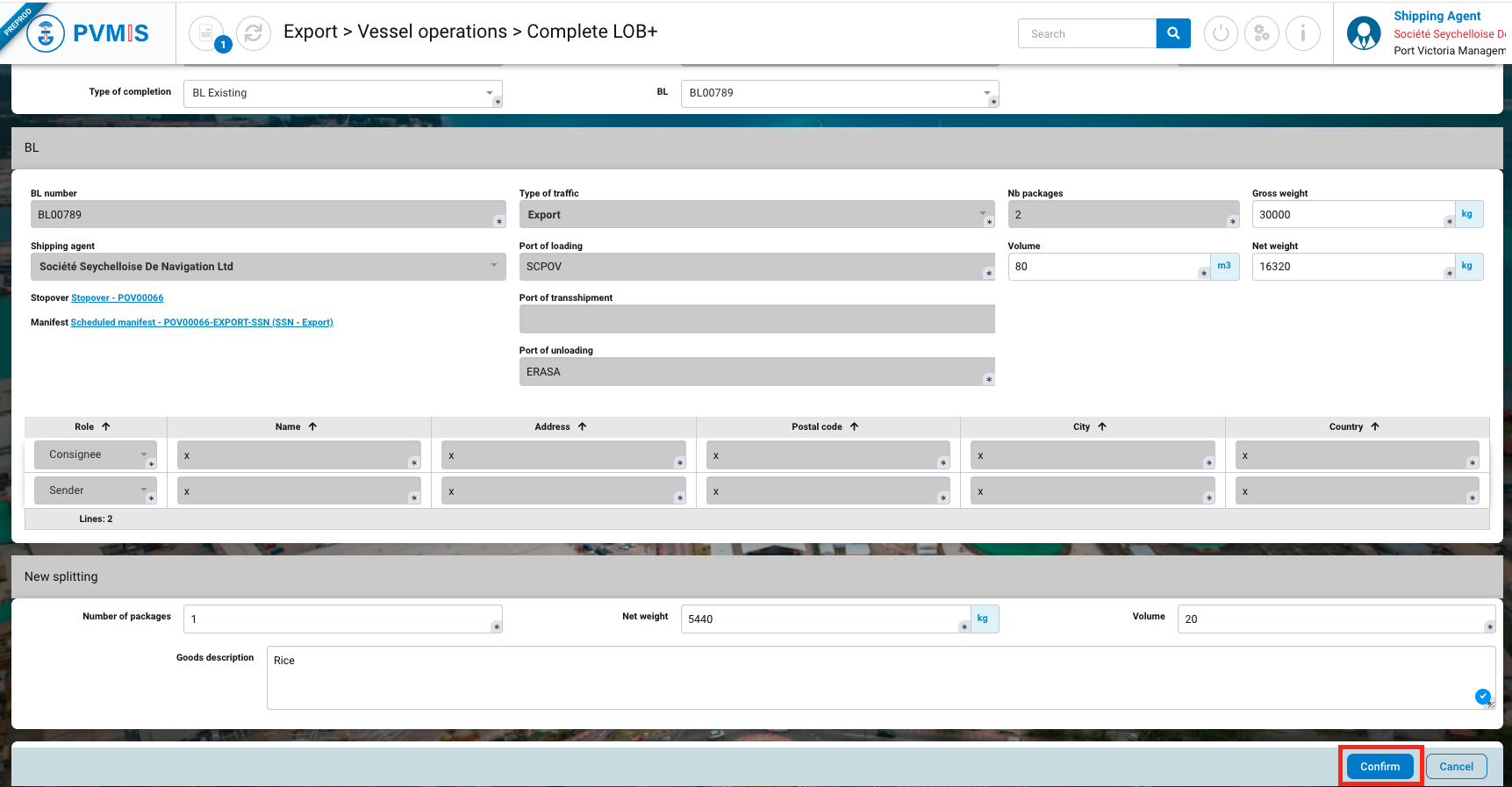 Port of unloading* | Pre-filled by SCPOV, in the Import process, Victoria port is the port of unloading. |