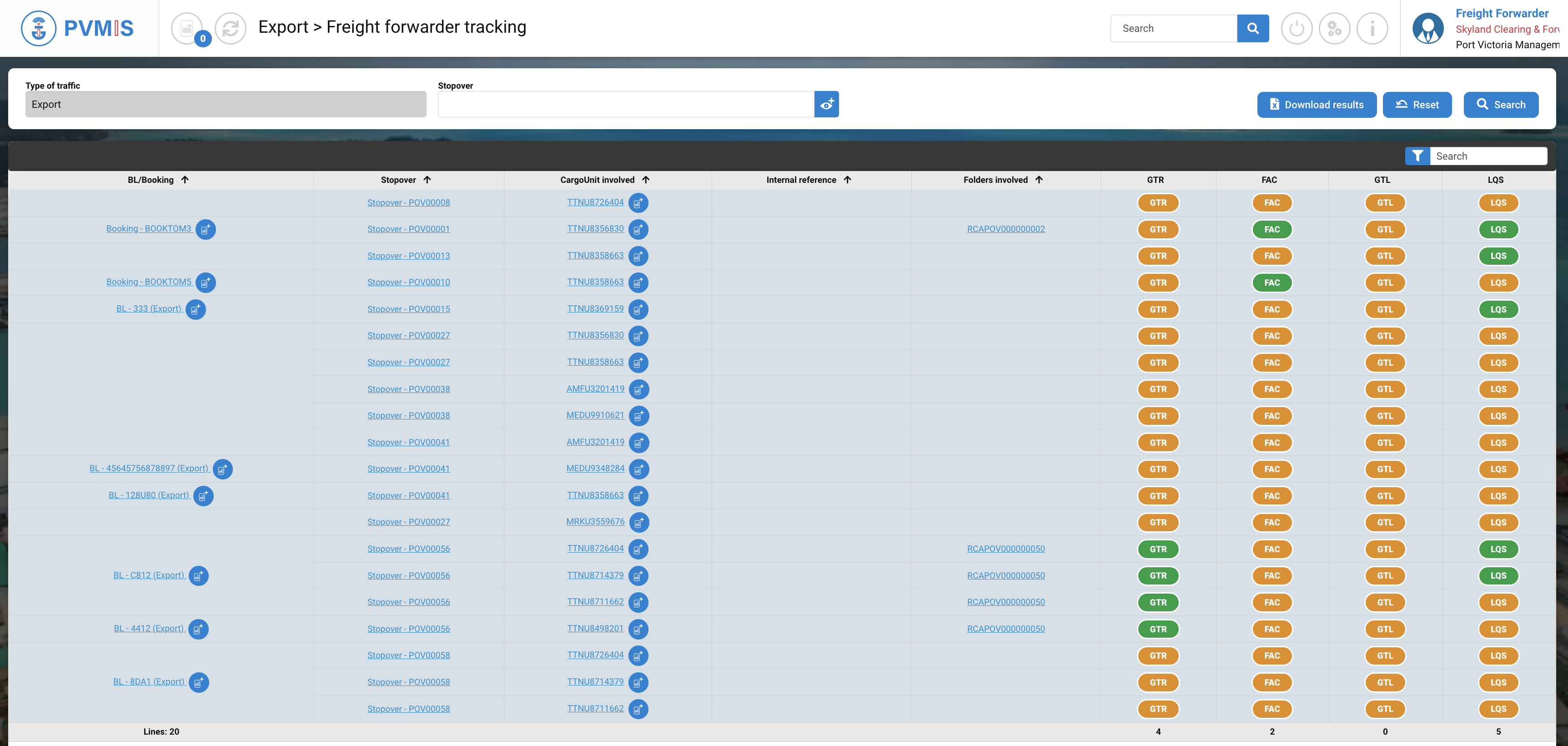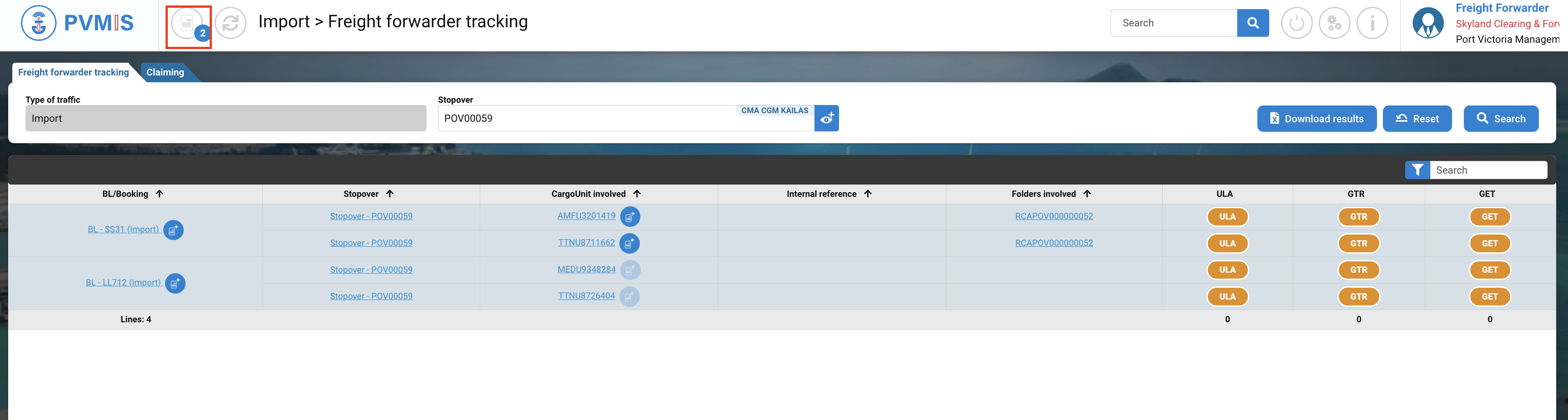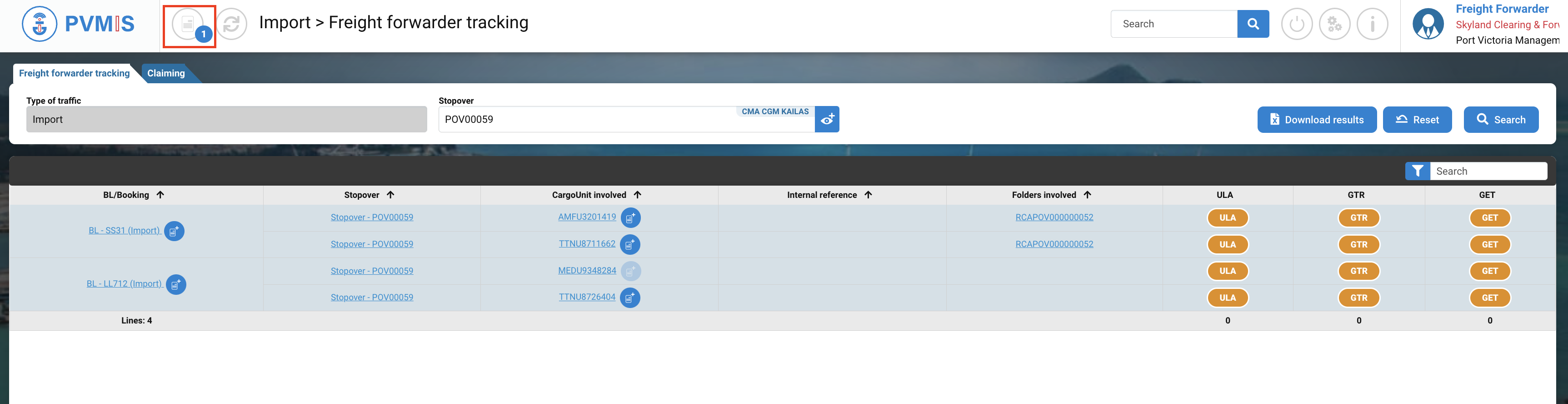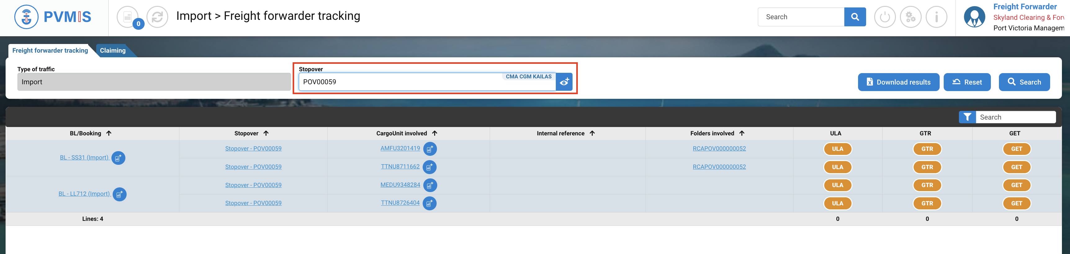 In the Freight forwarder tracking menu, you can filter the research by the number of the stopover: