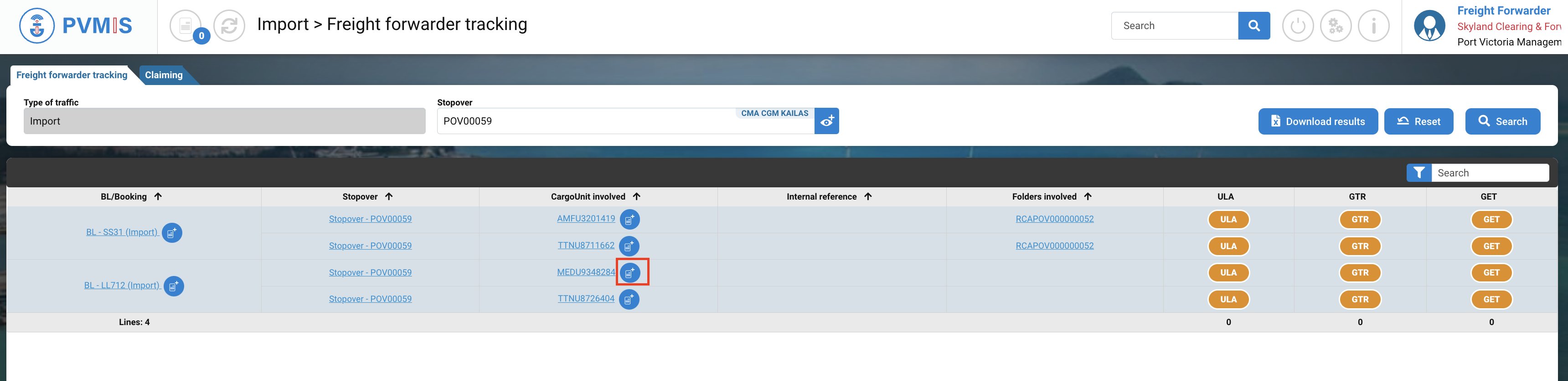 Select each CargoUnit to be included in an existing folder by clicking on the Cart icon in the CargoUnit involved column: