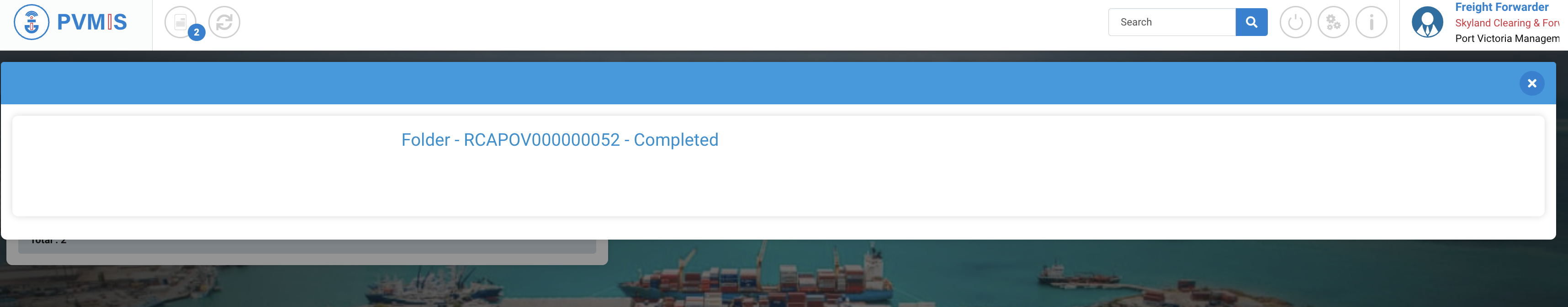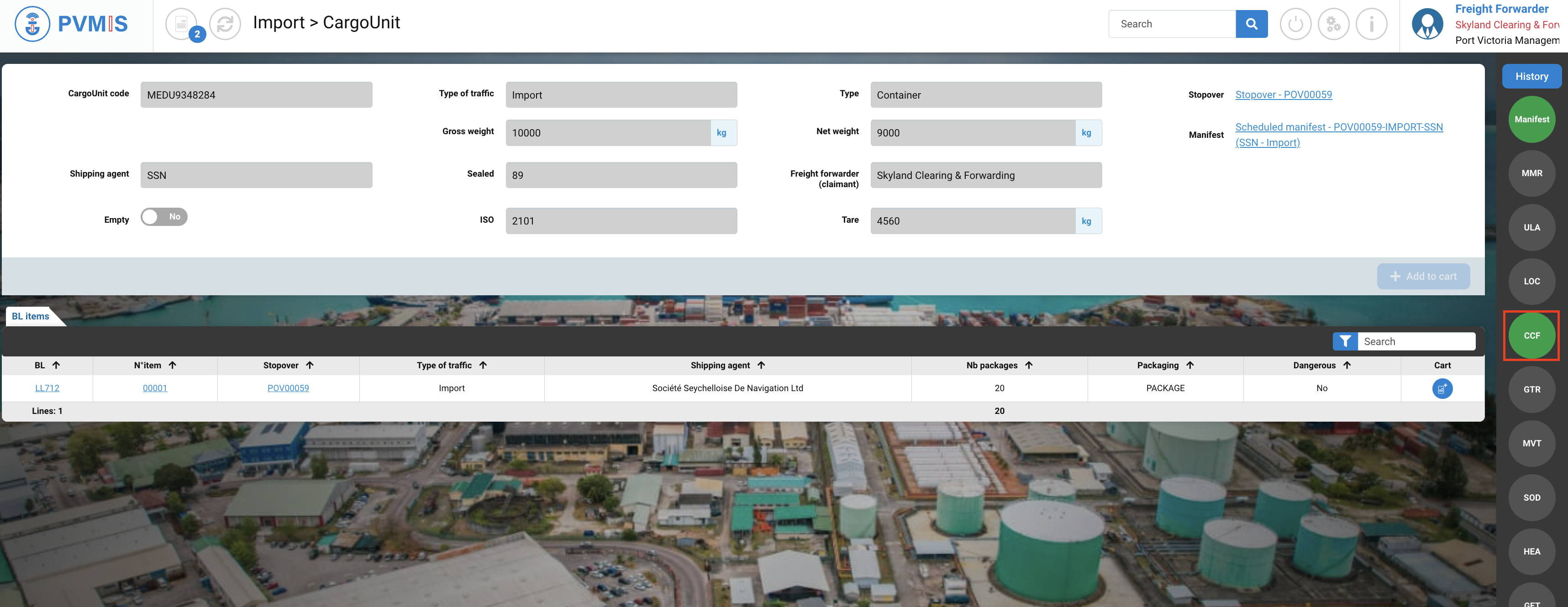 On the detail page of the CargoUnit, you can see the CCF status turn green on the right of screen. The CCF (Customs Clearance Folder) status corresponds to confirmation of the attachment to a folder.