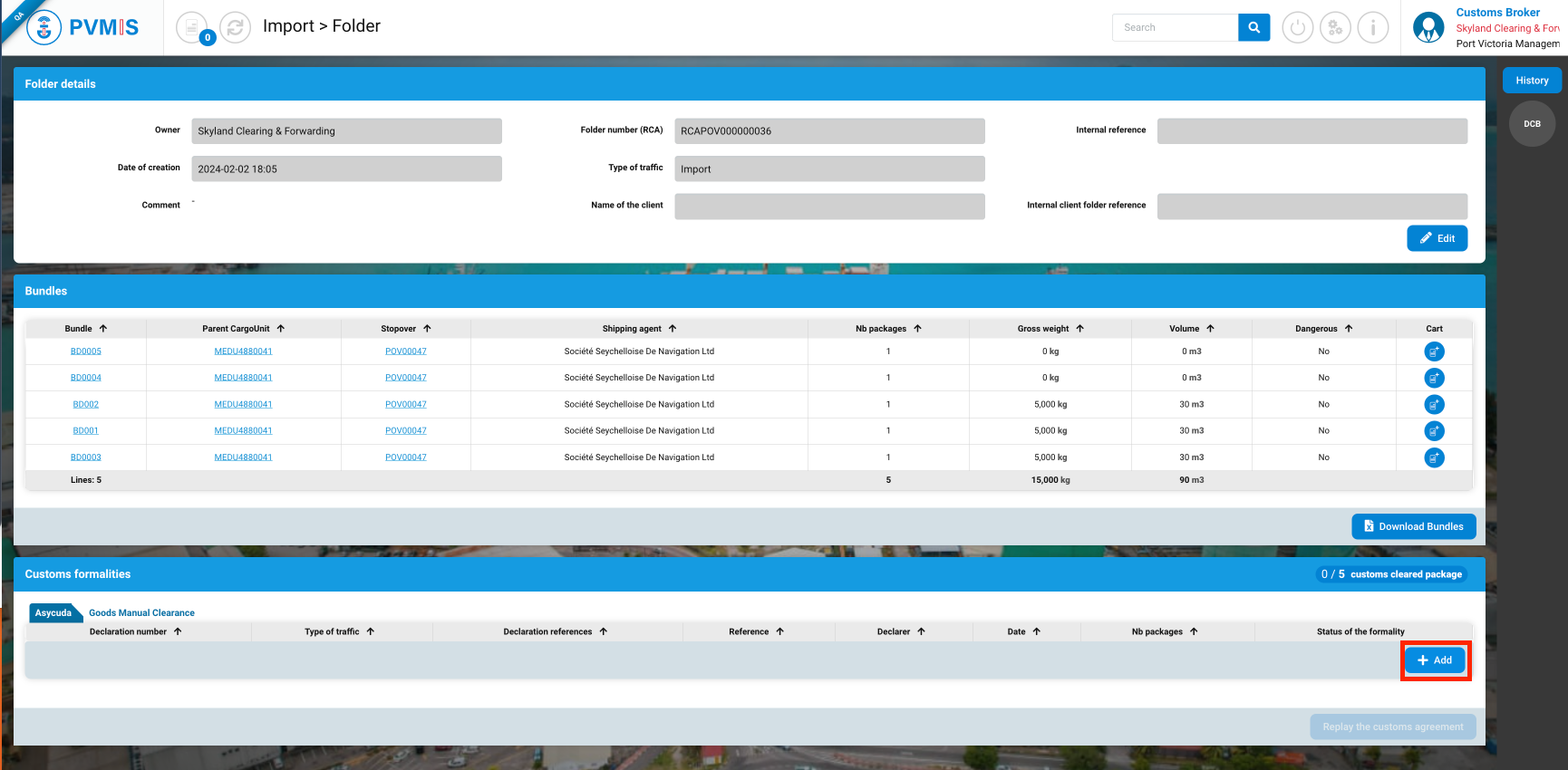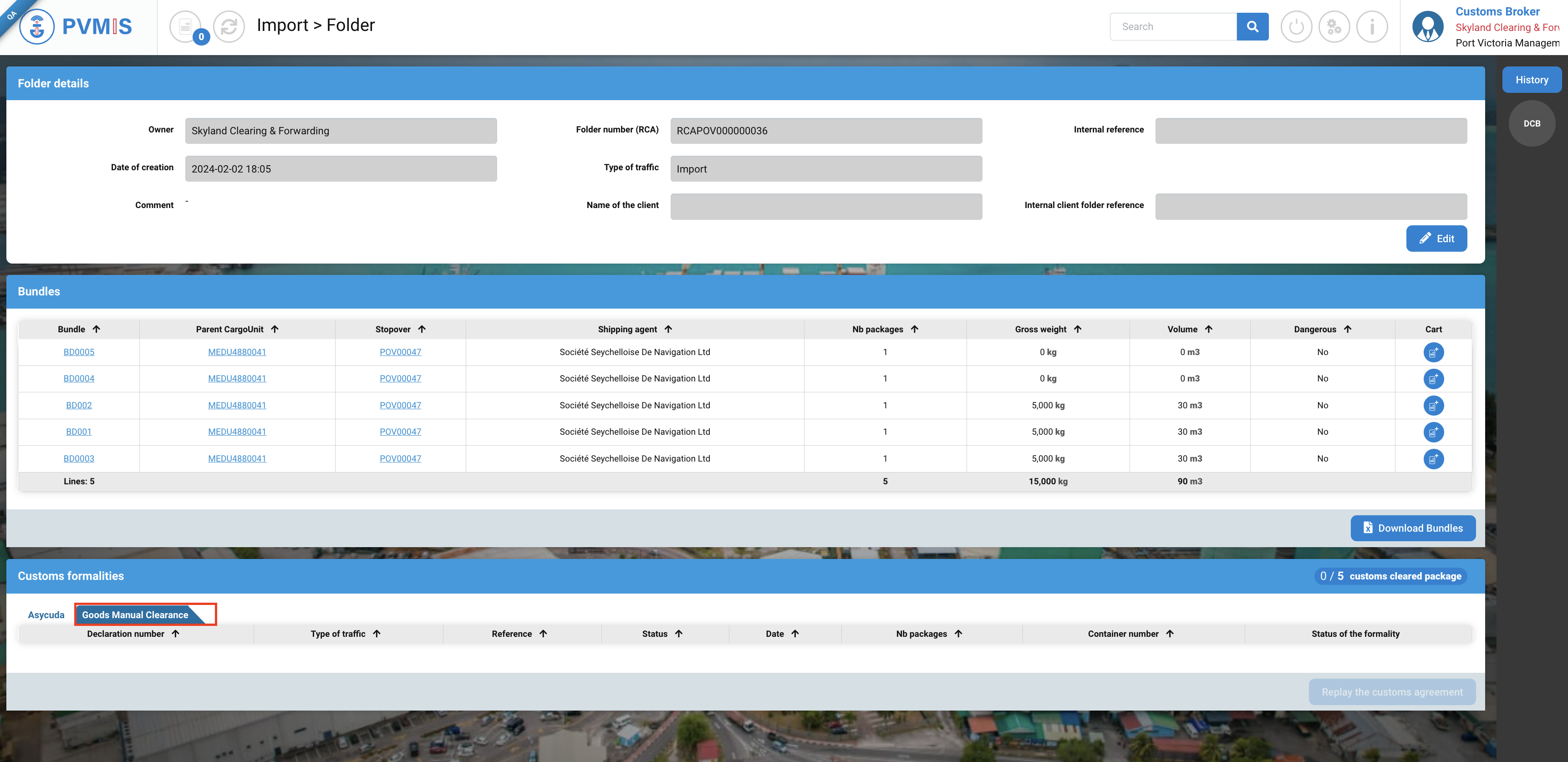 You can review information about the folder, access the Customs formalities section, select "Good Manual Clearance" tab: