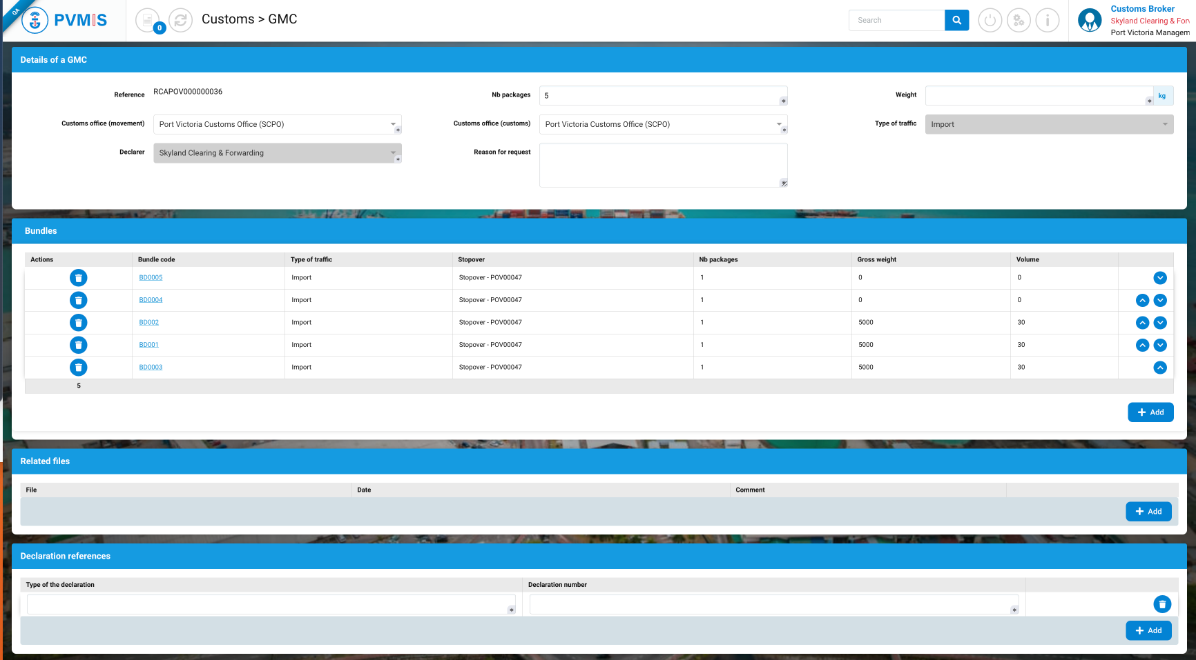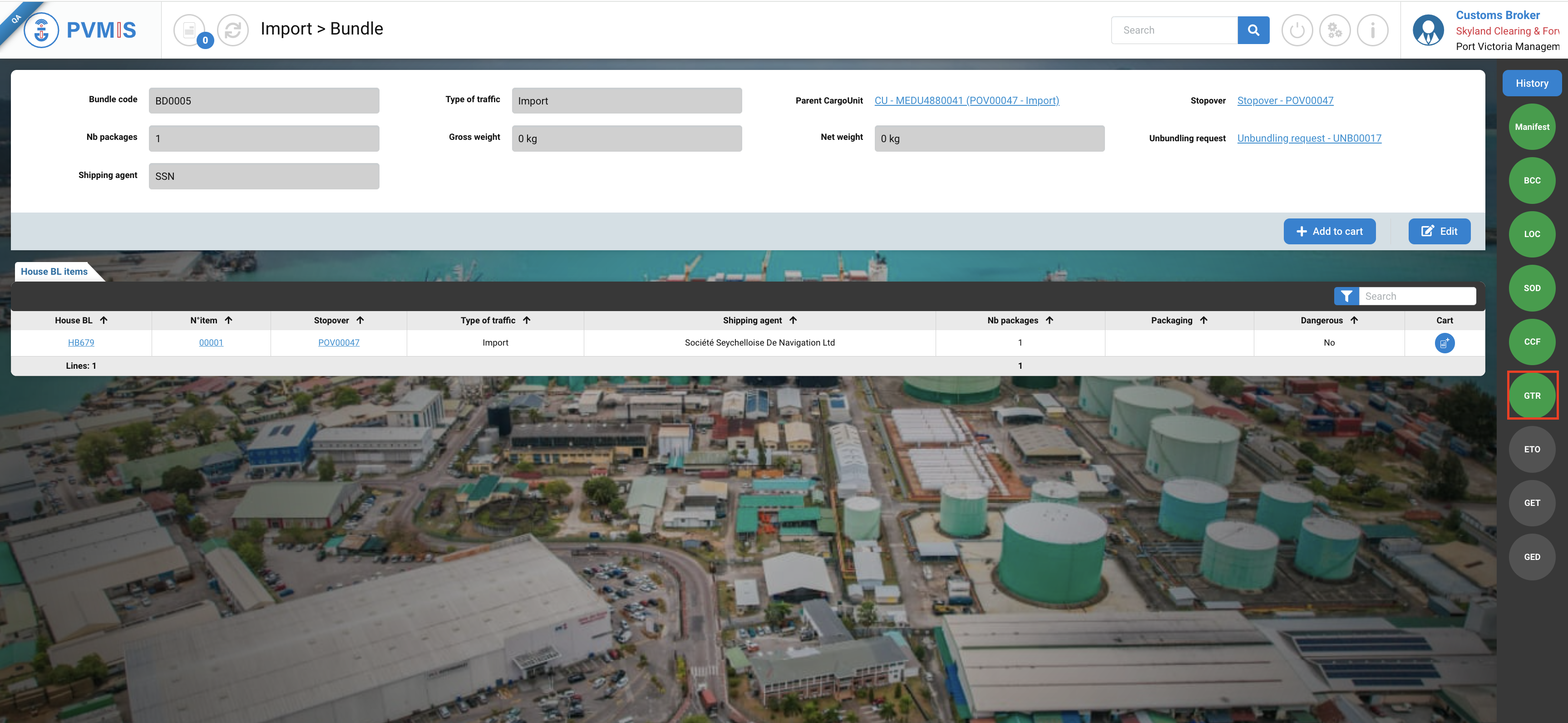 On the bundle detail, the validation of the customs allows the GTR (Good To Remove) indicator to turn green which indicates that the goods are cleared from customs.