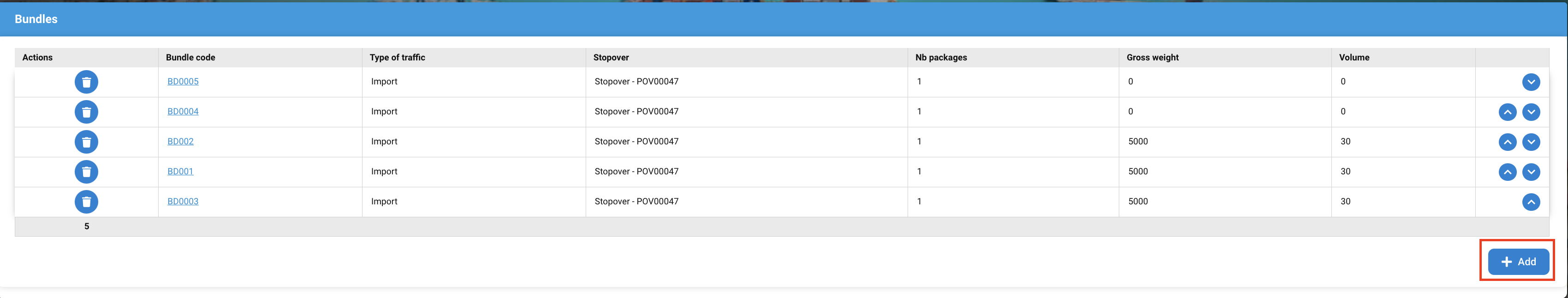 List of Bundles, you can delete by using the trash icon or add more by +Add button.