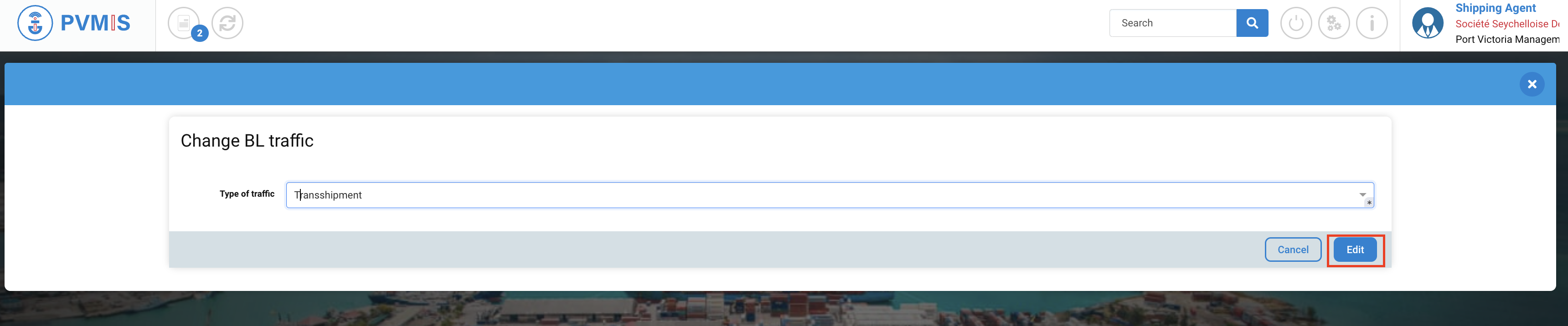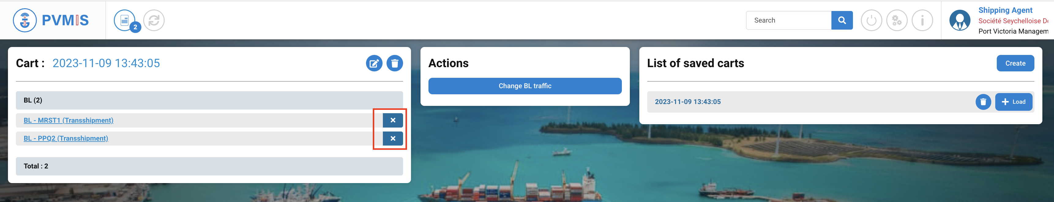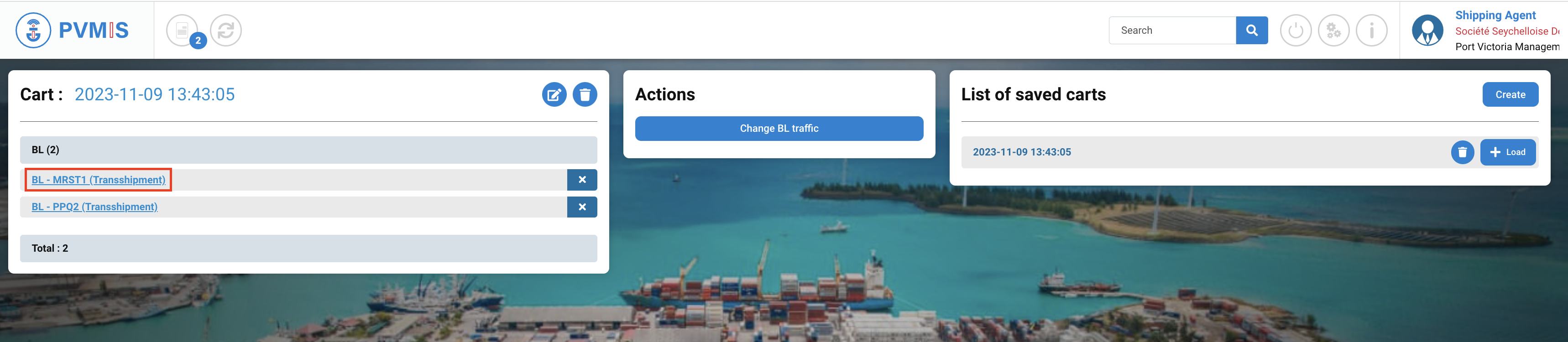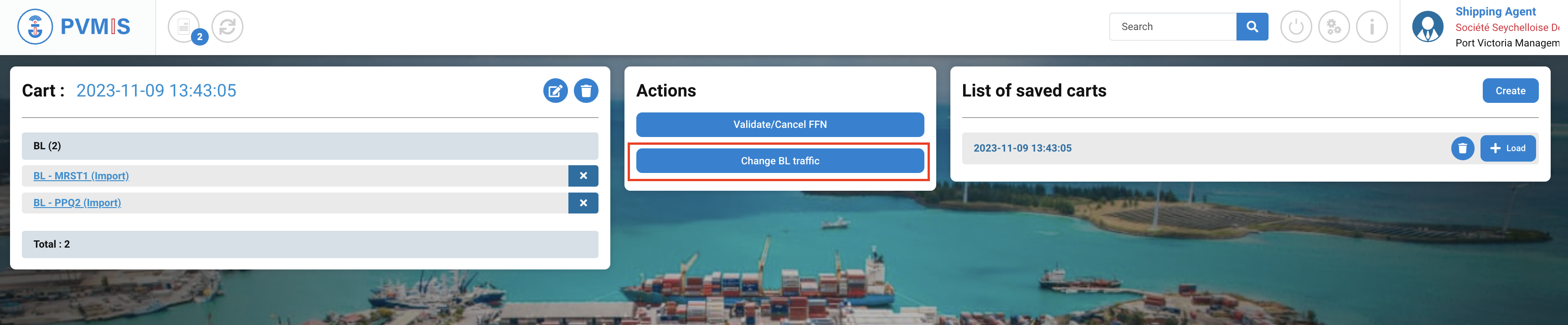 The objective of selection by cart allows the shipping agent to change traffic type to several BLs at the same time.