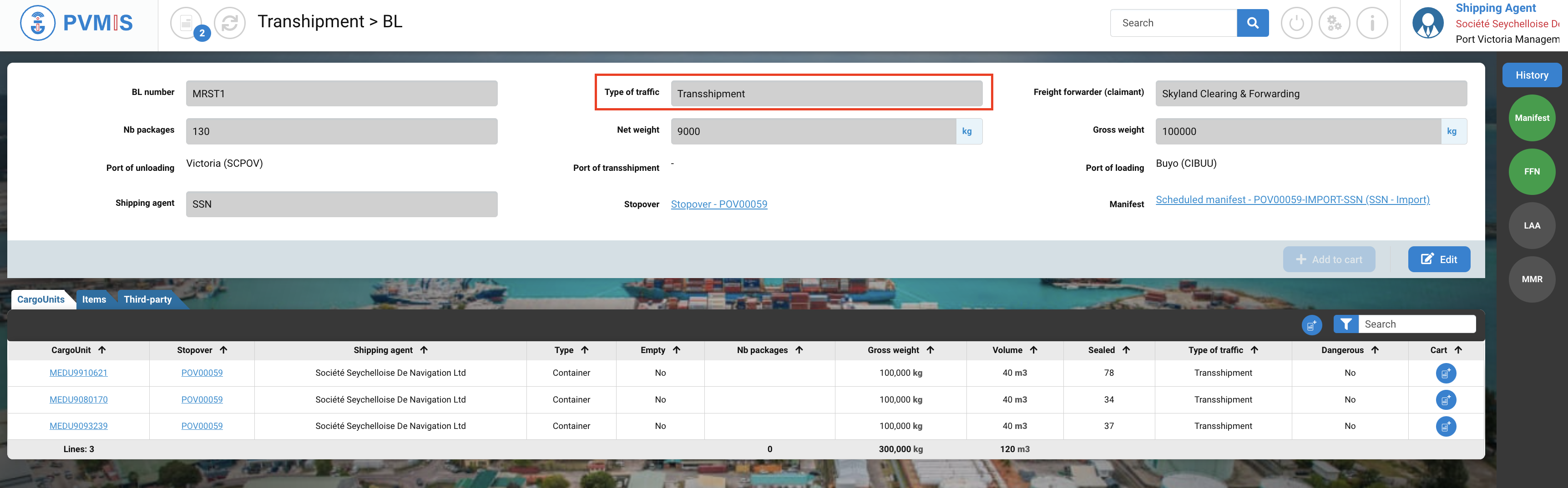 On the detail page of the BL, you can see the update of the Type of traffic field.