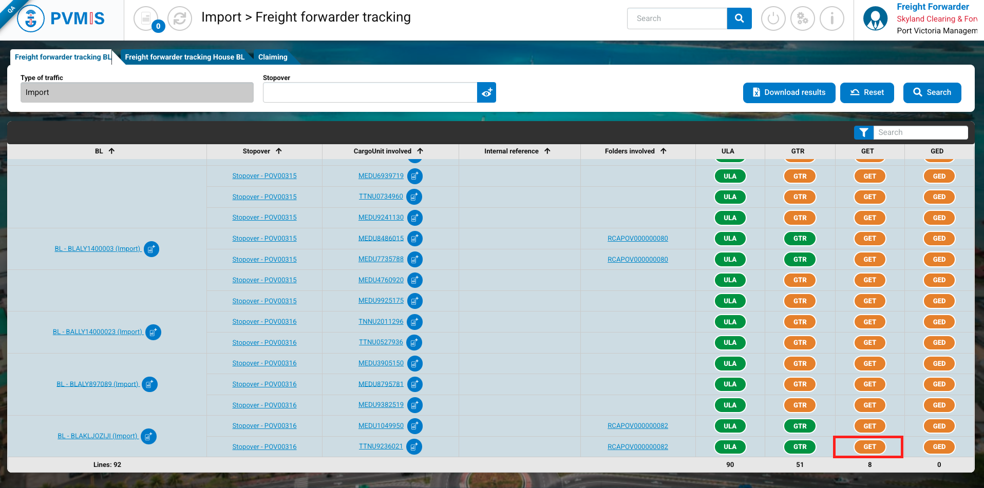 This list allows you, as a Claimant, to track all the Cargo Units associated with the BLs on which the freight forwarder company is named.