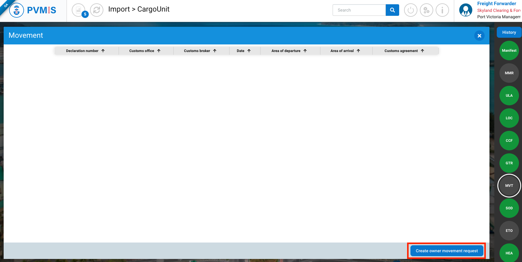 You are on the detail page of the CargoUni, click on MVT indicator on the righ on the screen: