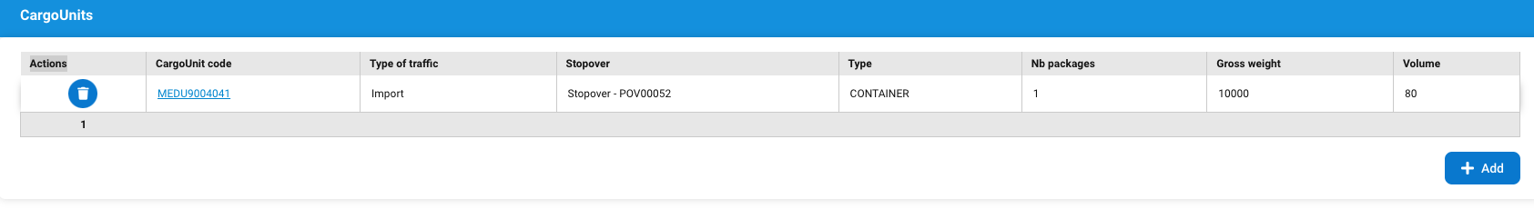 To access the detail page of a CargoUnit in one click, in the search bar, enter the code of the desired CargoUnit and press the enter key.