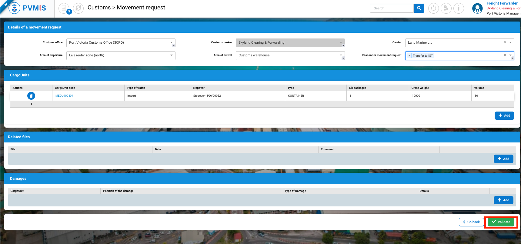 After completing the mandatory fields, click on Validate button: