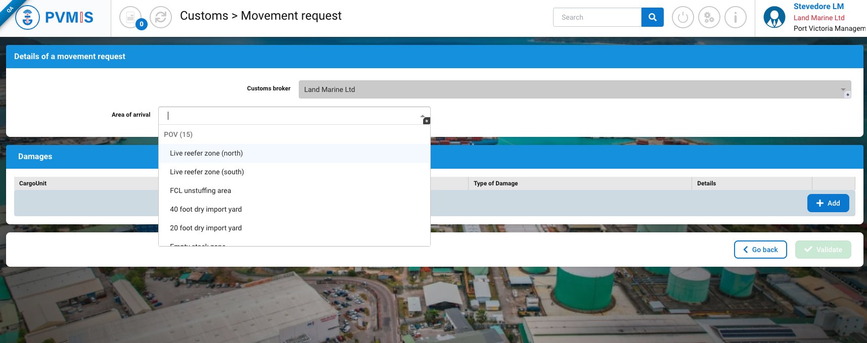 The internal movement request is created. The request is automatically validated, you are authorized to move this container within the terminal.