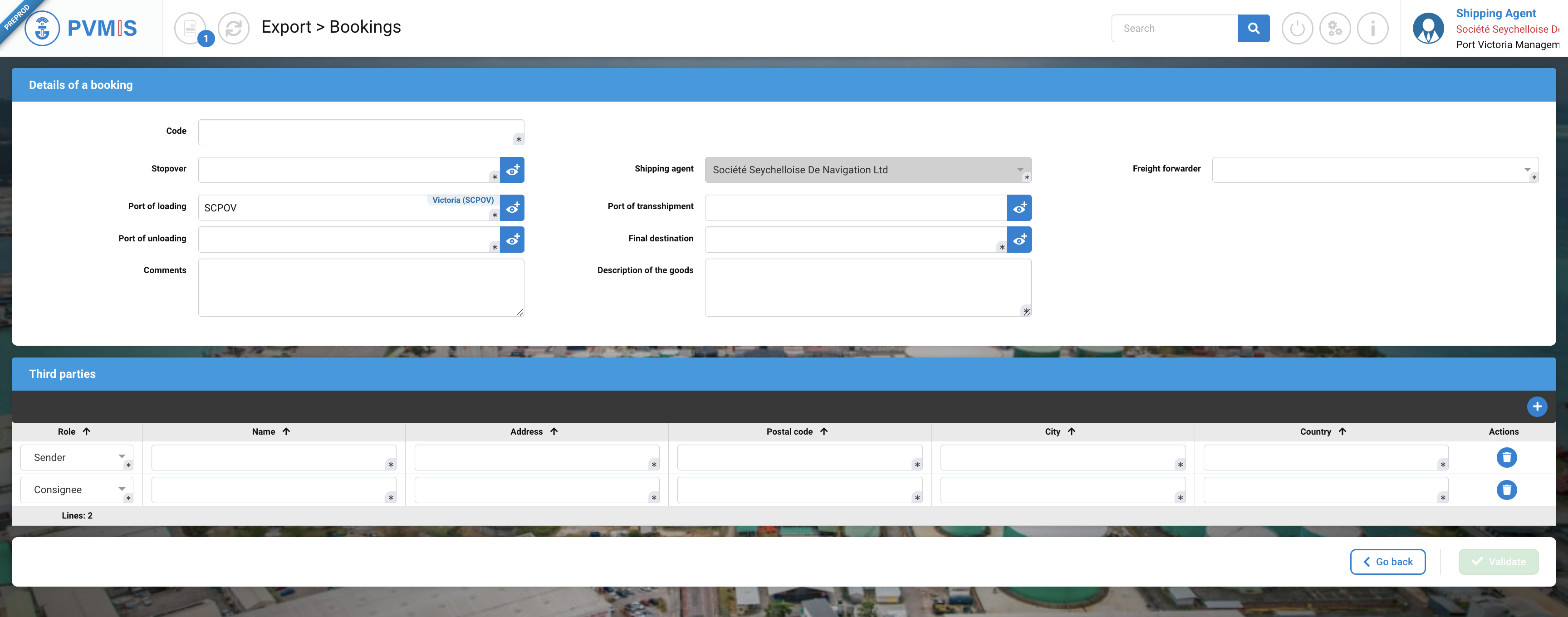 Port of loading* | Pre-filled automatically, but can be edited. |