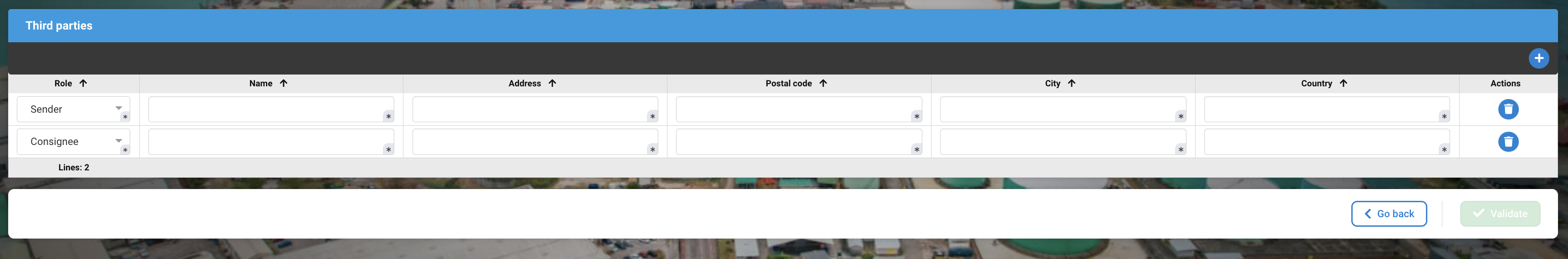 In the third party section, the sender and consignee fields are mandatory.