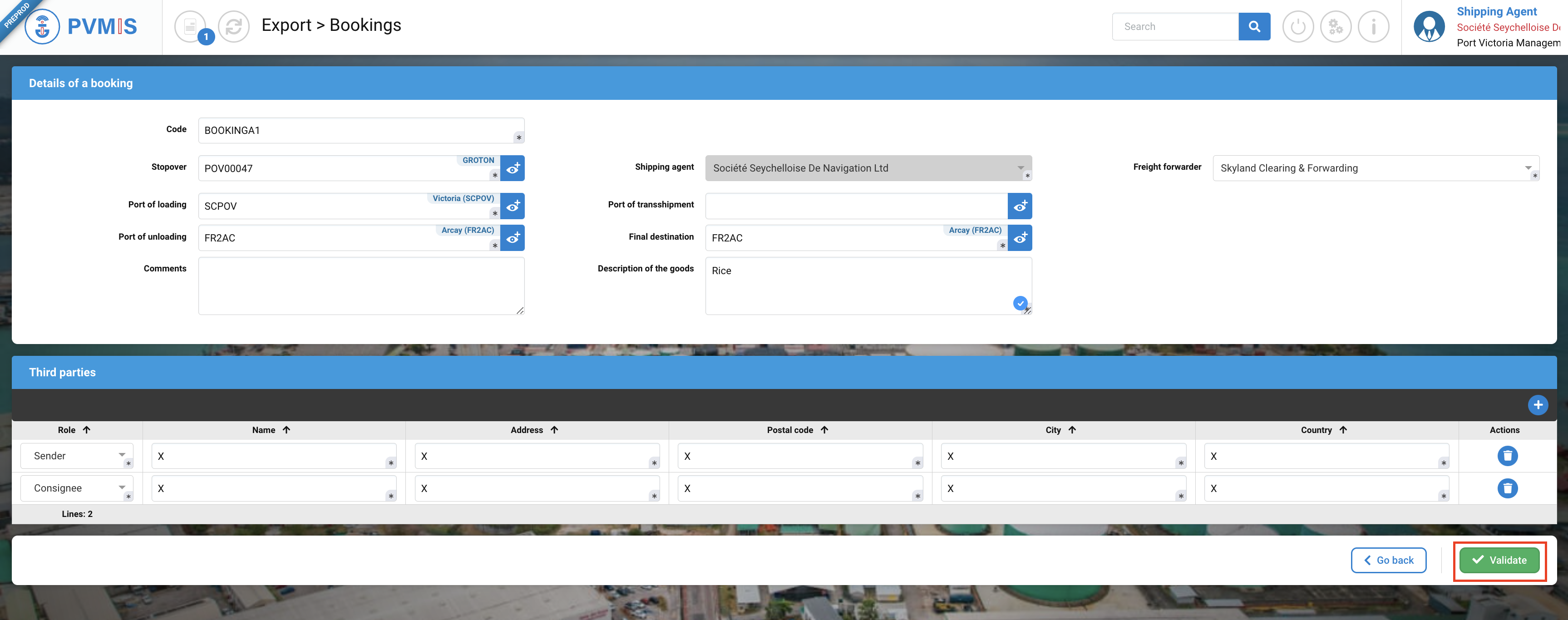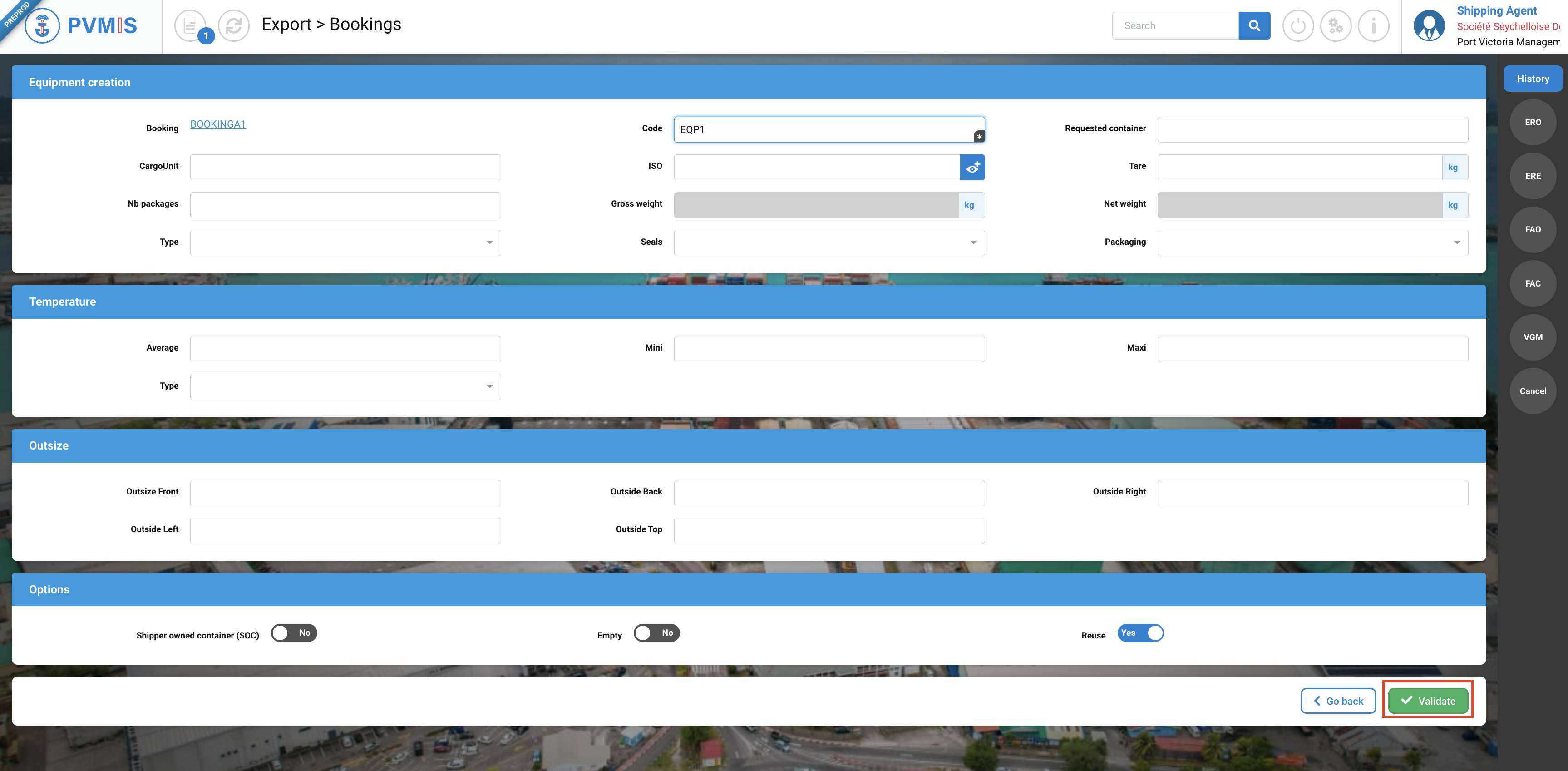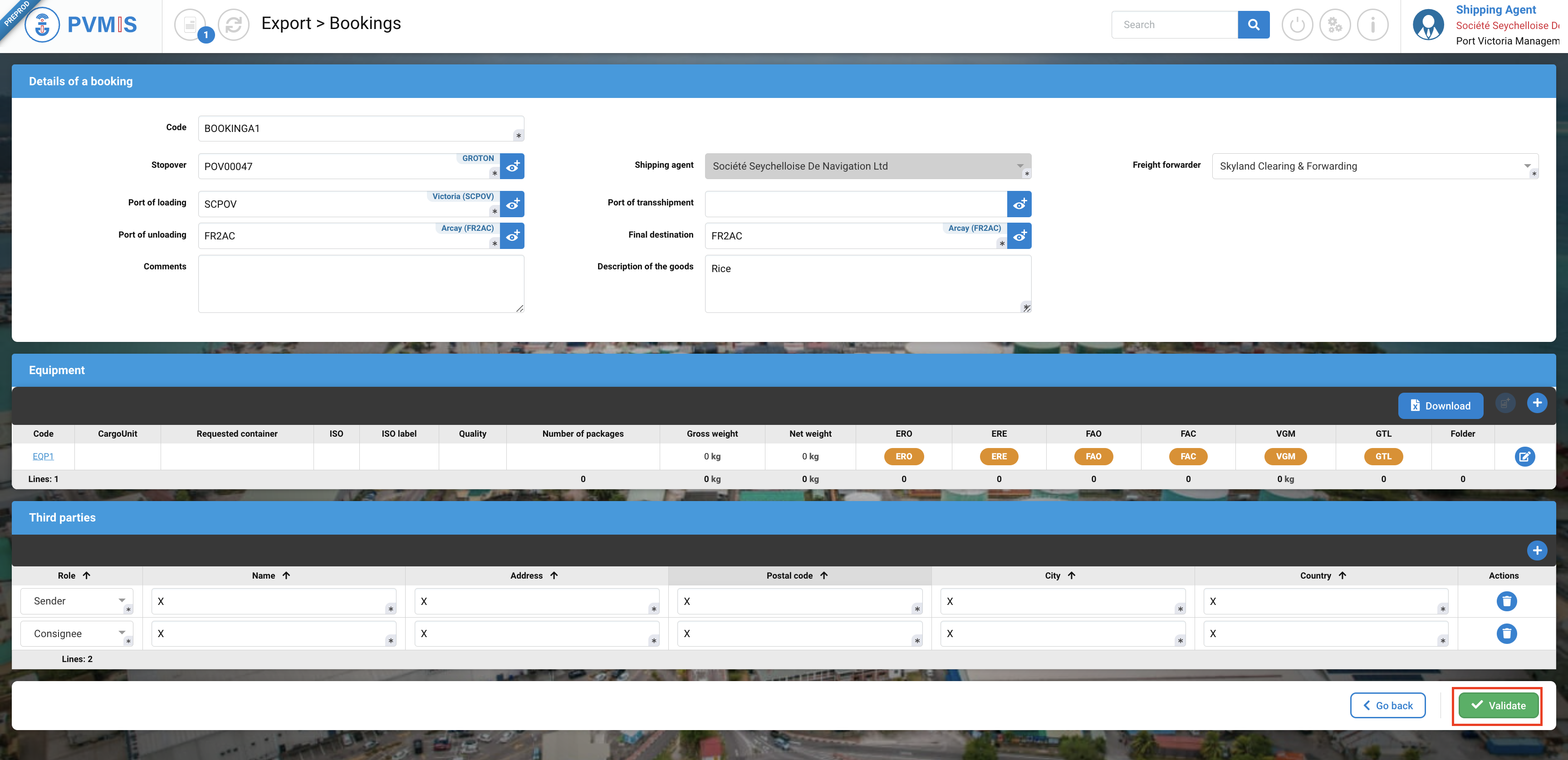 Once this mandatory information is populated, click on Validate button: