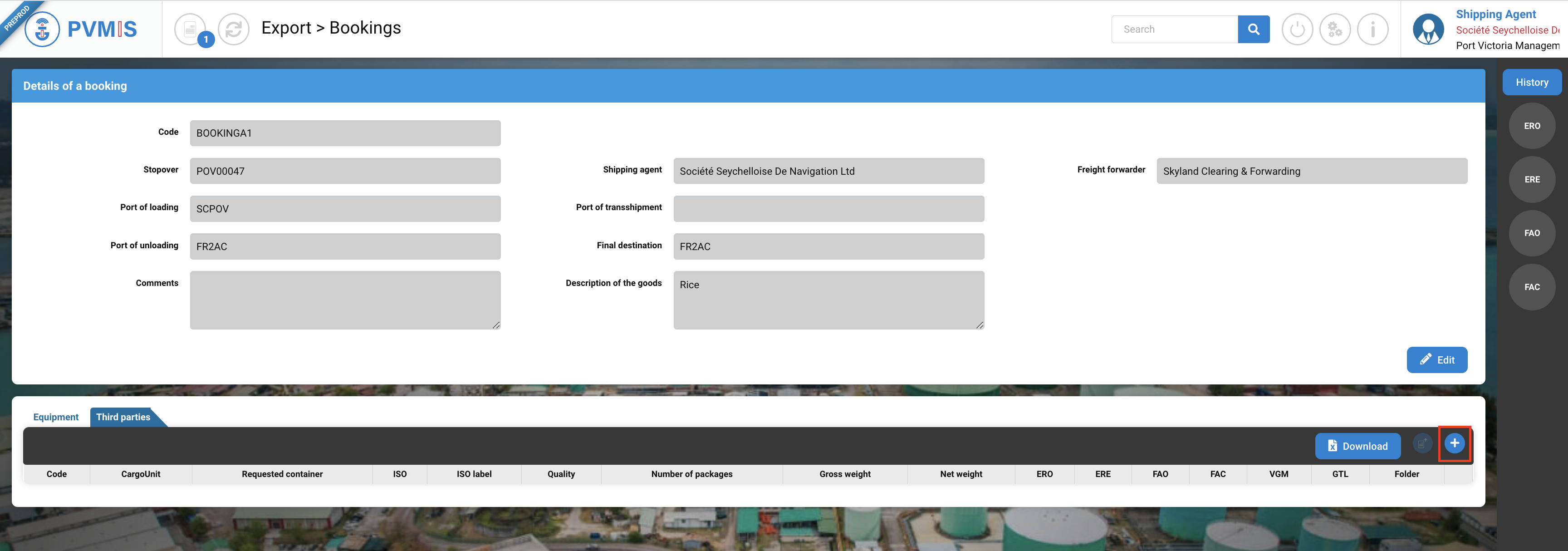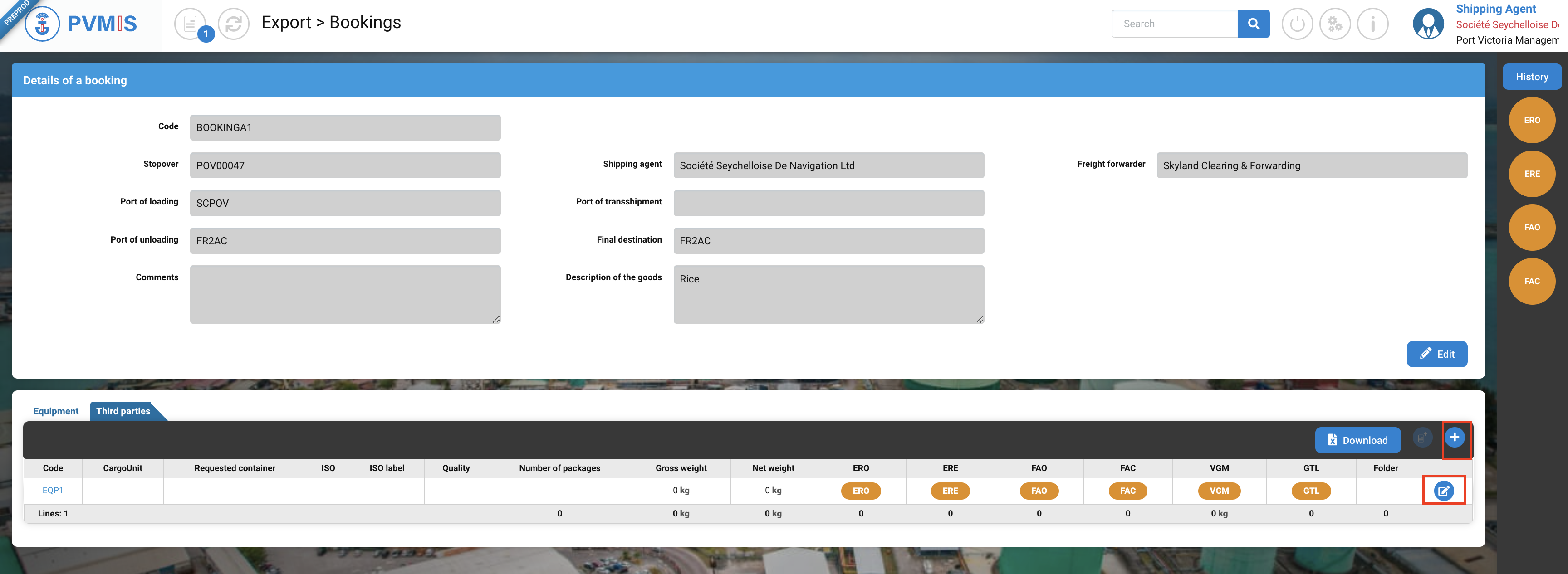 ERO (Empty Release Order) ; After creation of the booking with equipment, the freight forwarder (claimant) create a transport order for an empty equipment.