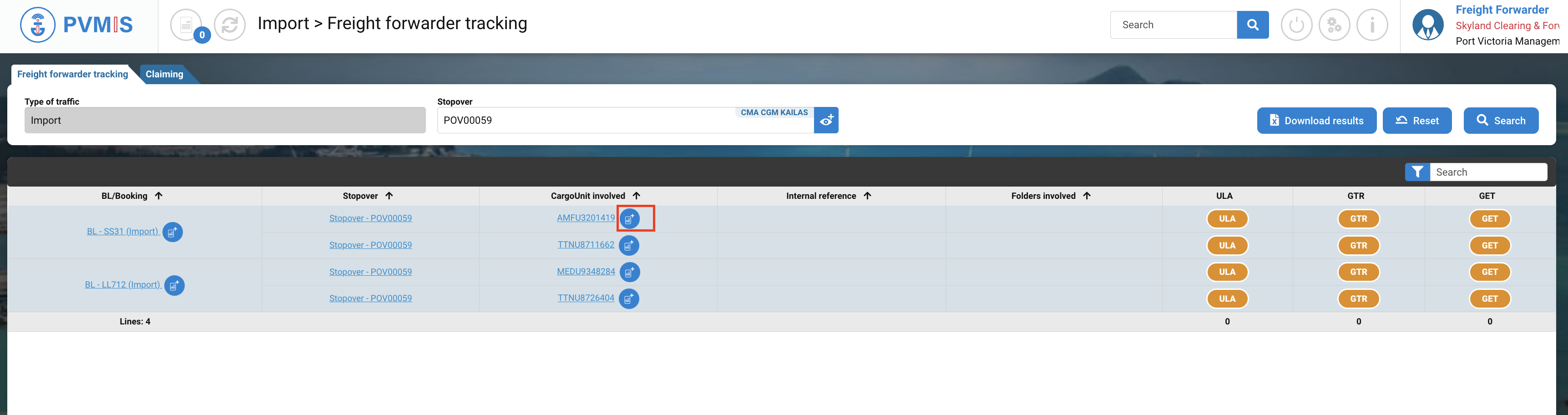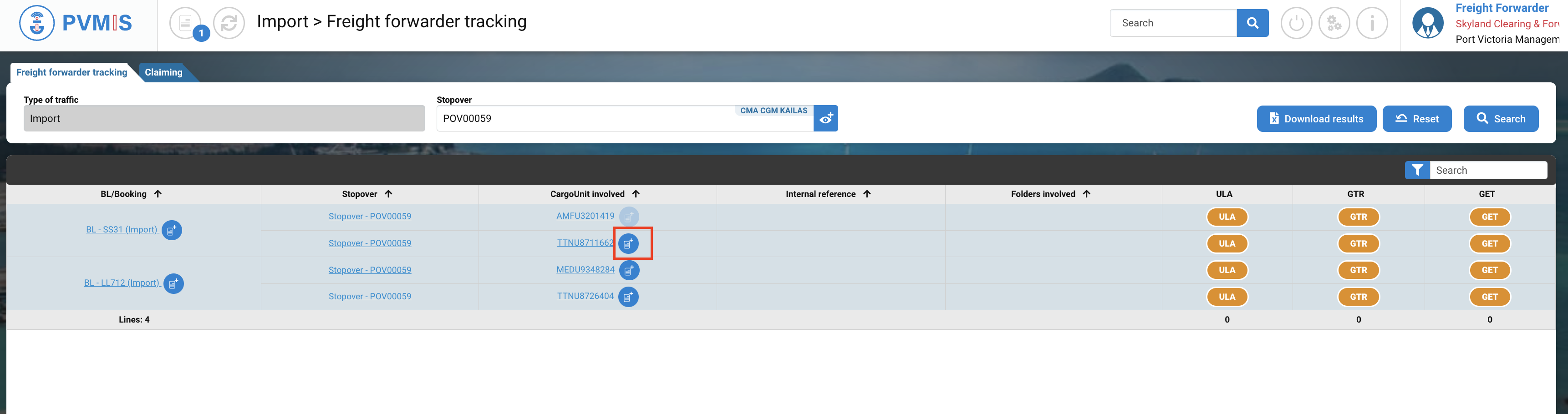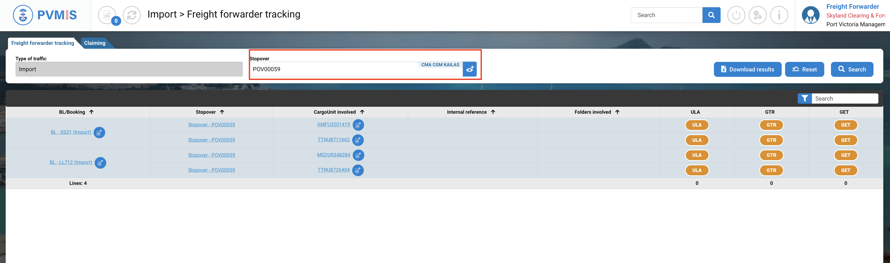 In the Freight forwarder tracking menu, you can filter the research by the number of the stopover: