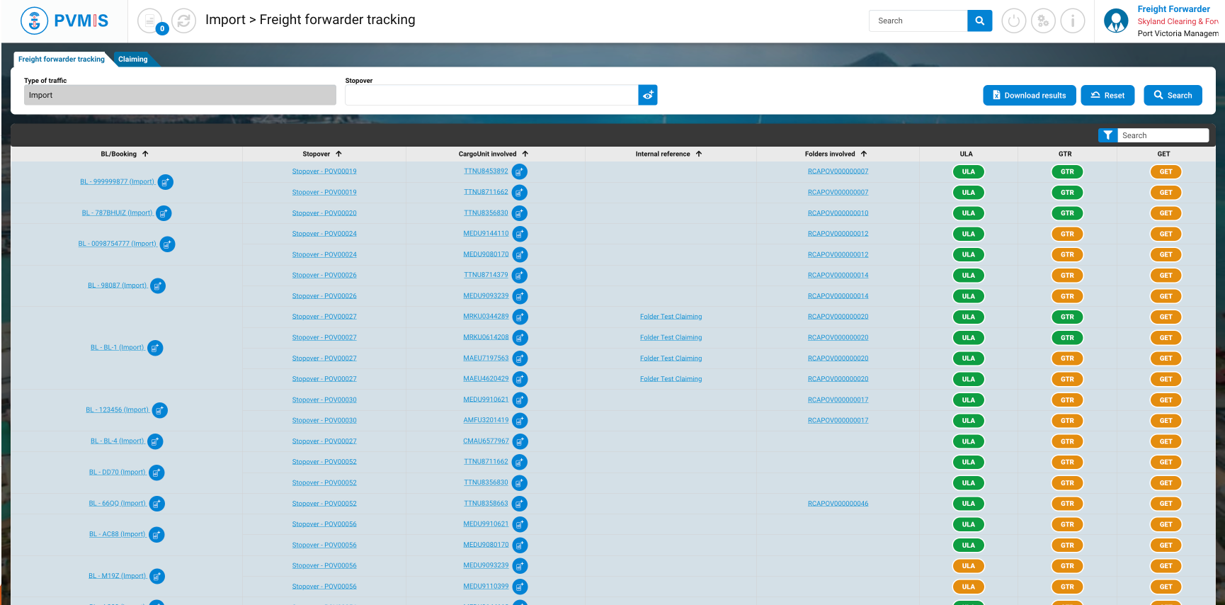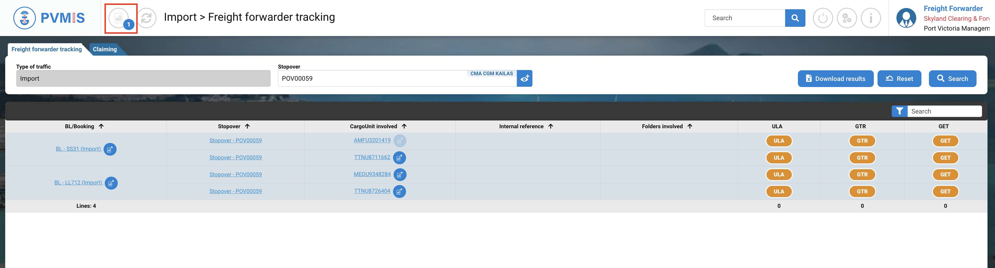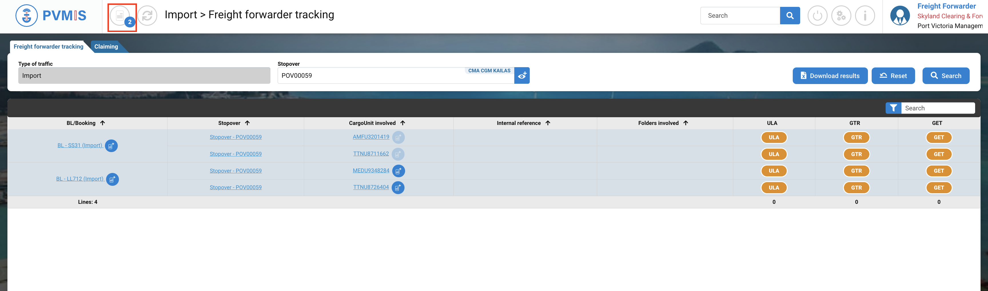 In the Freight forwarder tracking menu, you can filter the research by the number of the stopover: