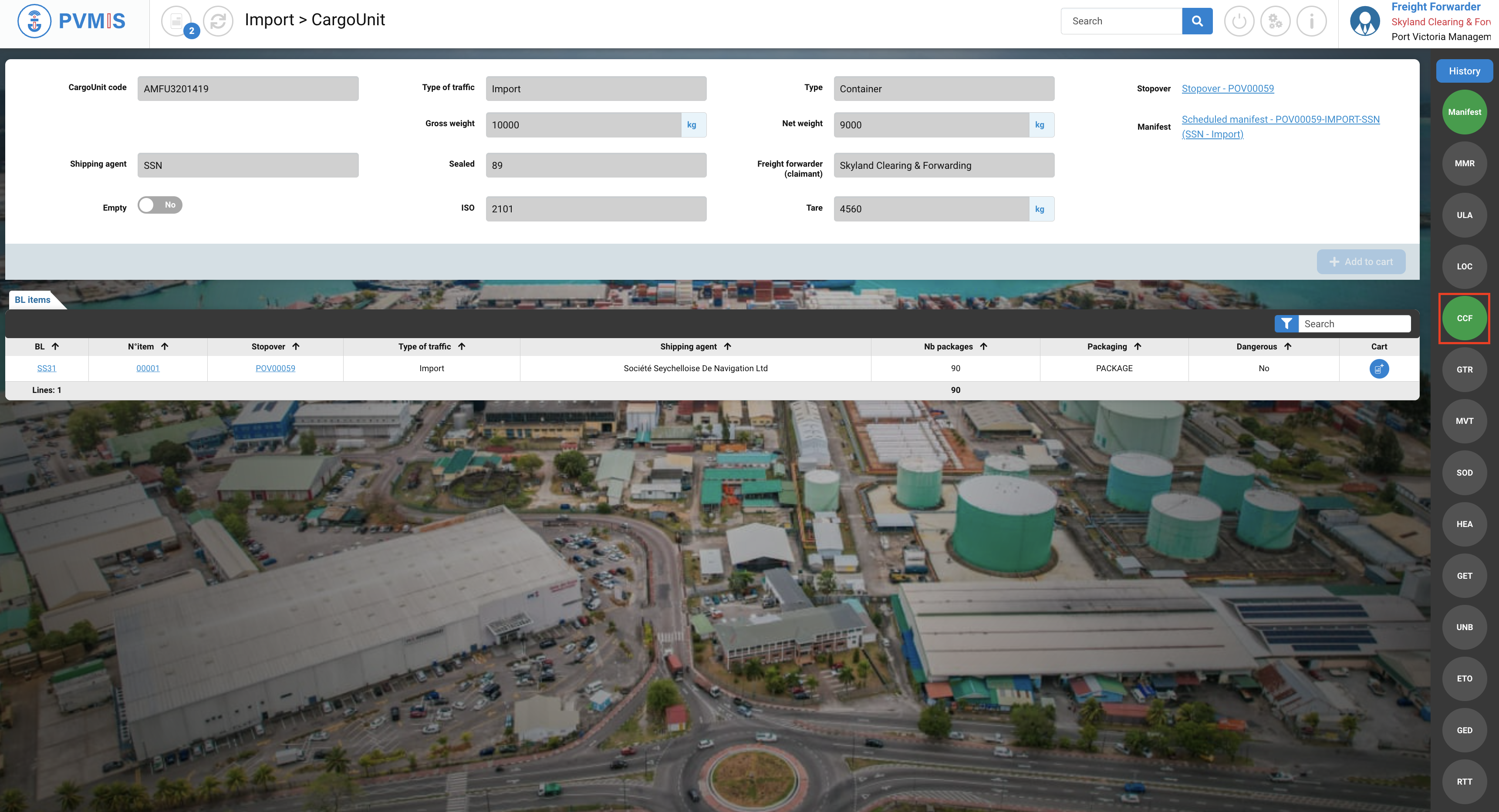 On the detail page of the CargoUnit, you can see the CCF status turn green on the right of screen. The CCF (Customs Clearance Folder) status corresponds to confirmation of a folder creation.