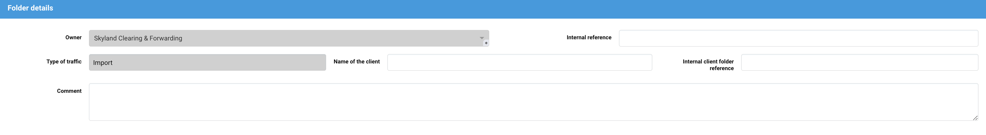 Description | The custom brokers creates a customs clearance folder. |