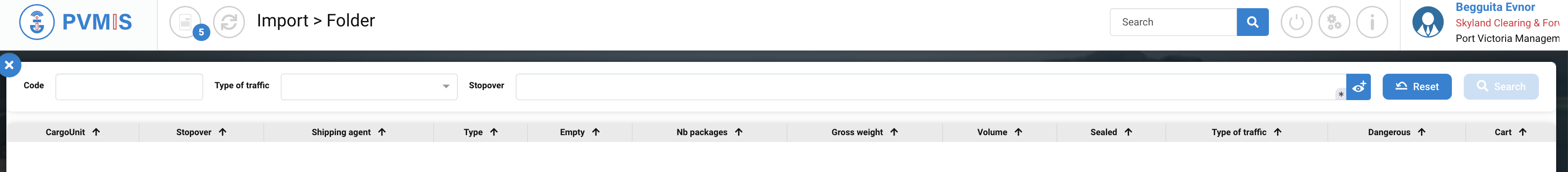 This action will redirect you to a list of CargoUnits. From there, you can search for the specific CargoUnit you want by using the search bar. To locate your CargoUnit, you can enter the Code, select the Type of traffic, and input the number of Stopover (these are mandatory fields). After filling in this information, click on the "Search" button.