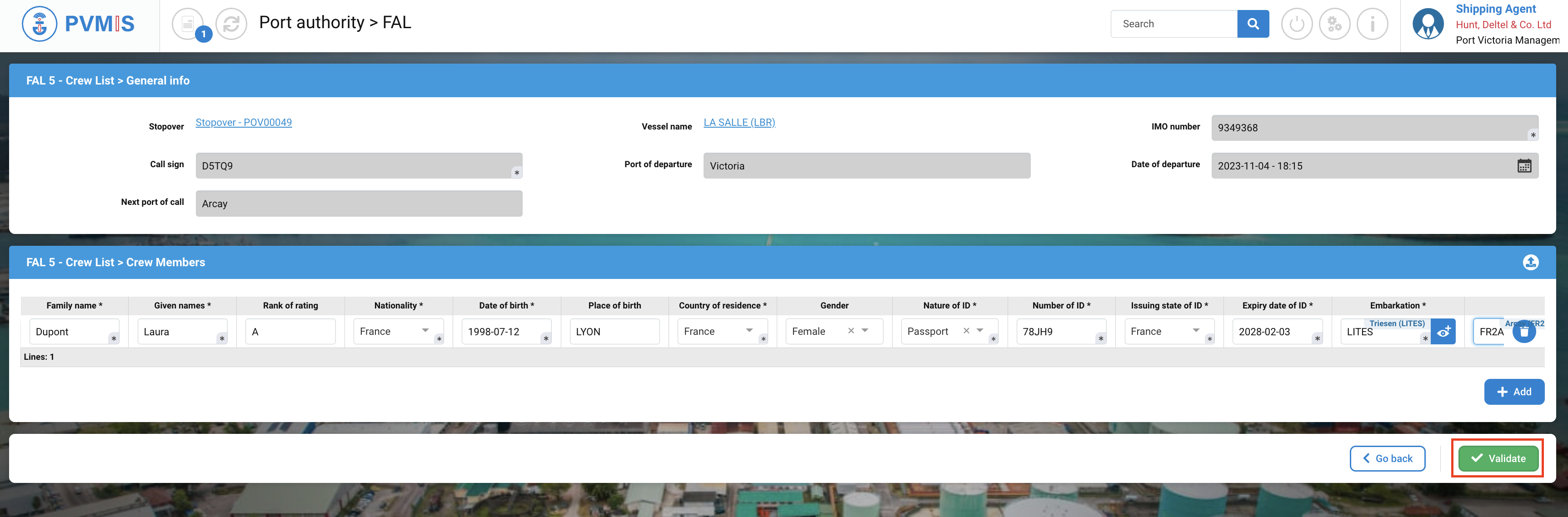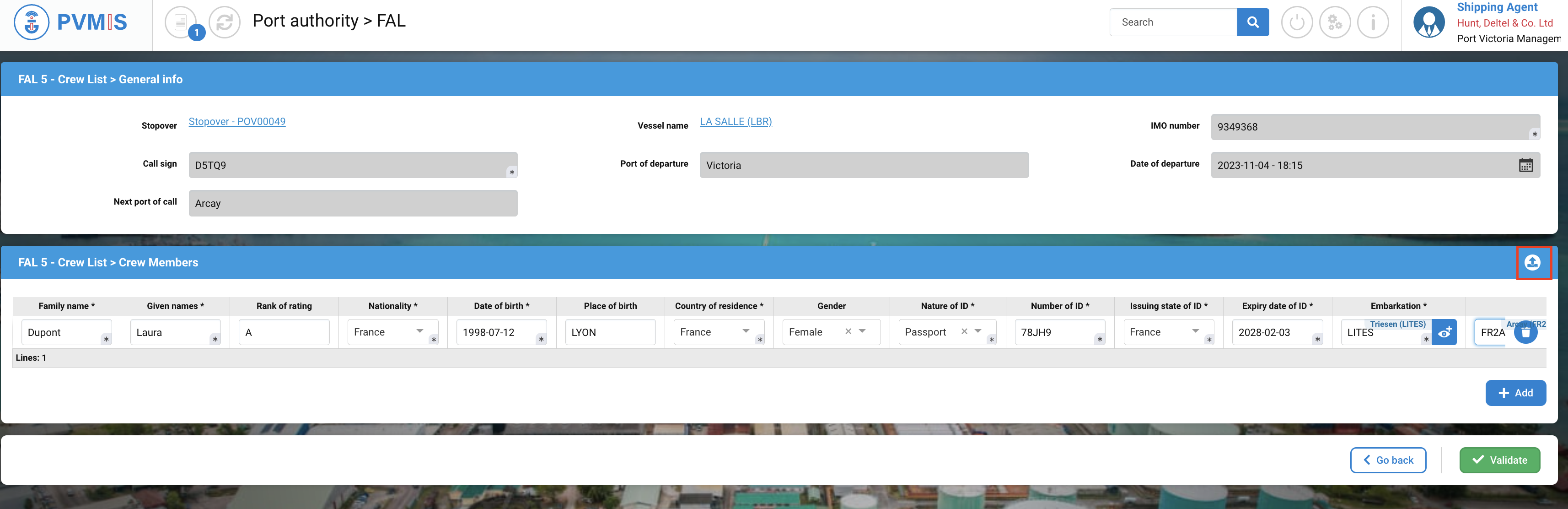 The FAL 5 is the Crew List. Most of the required information comes from the stopover data and from previous FAL forms. The crew members are then added manually.