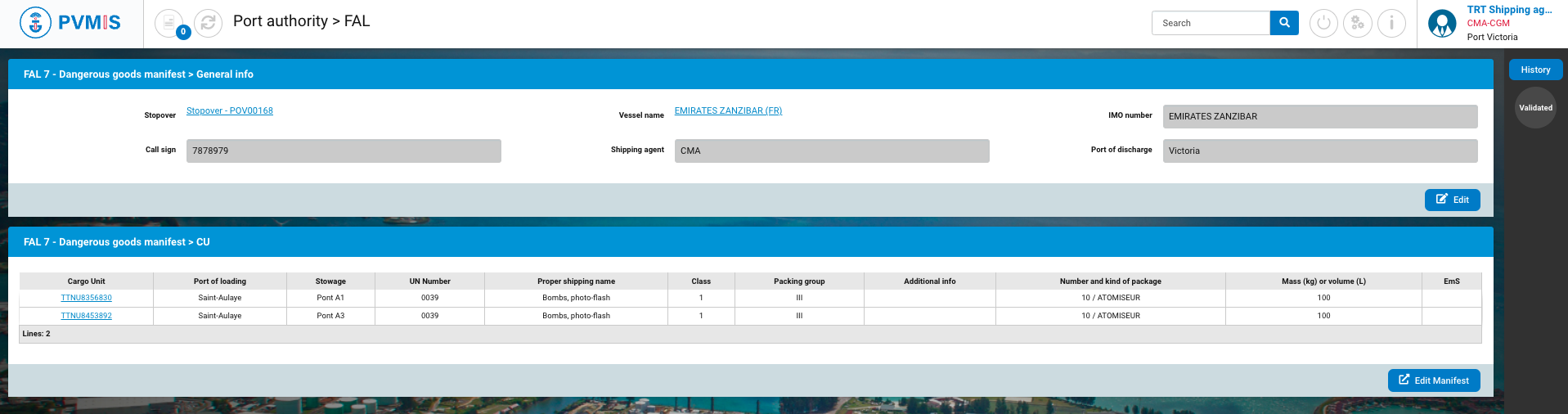 Vessel Name | The vessel of the stopover, the FAL is attached to. You can click on the link to access to the detail of the vessel. |