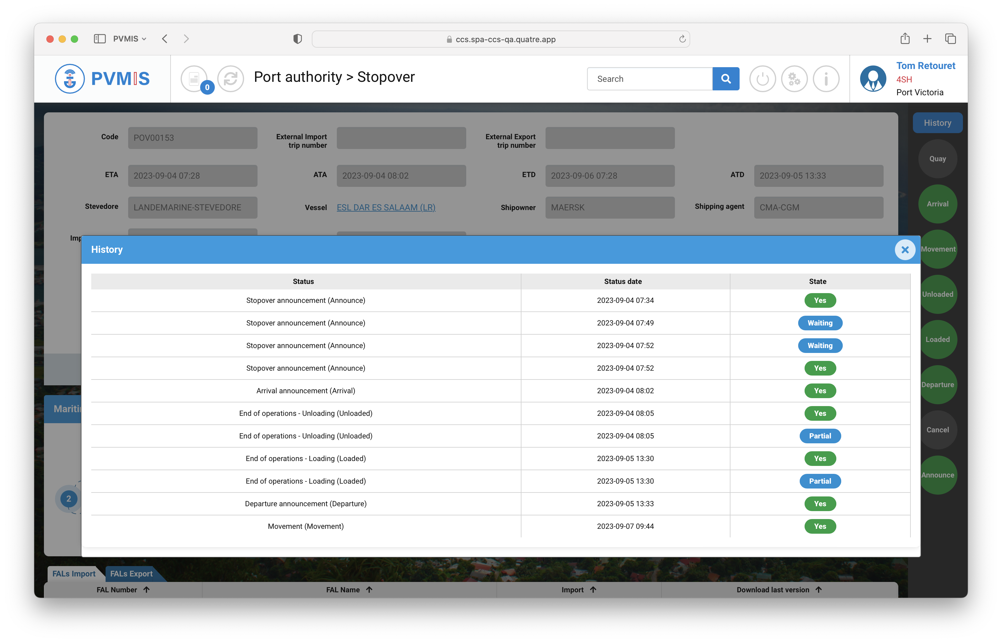 Clicking on it will display a popup with details of this history.