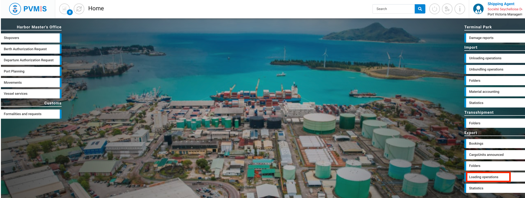 Click on Loading Operations menu in the Export section: