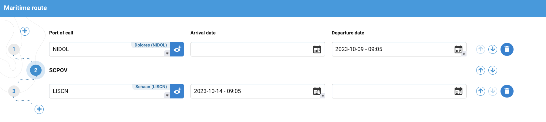 Next Port of call* | Corresponds to the harbor of destination after the SCPOV stopover. |