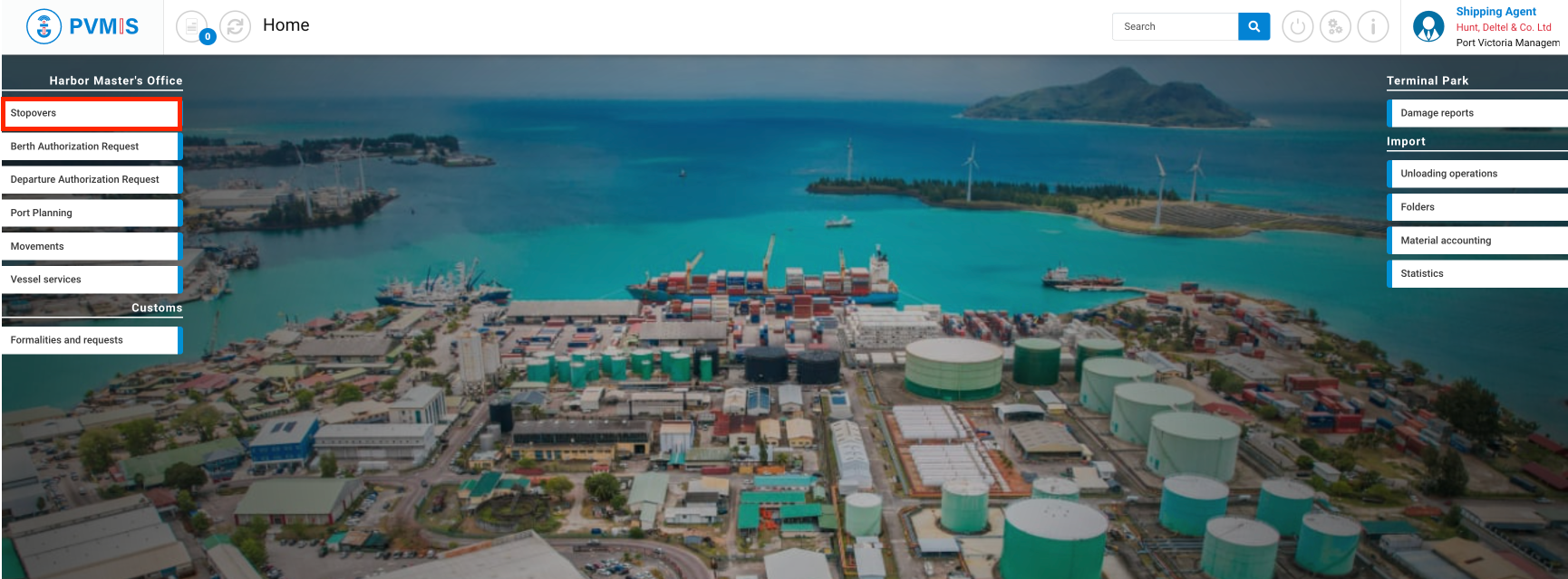 To create a stopover, click on the “Stopovers” menu in the Harbor Master’s office section: