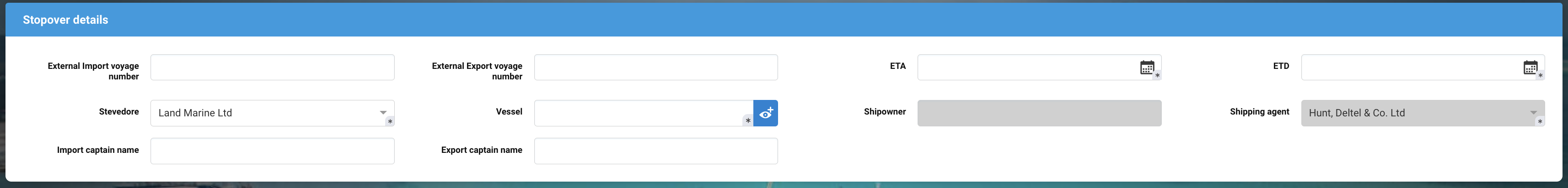 Shipowner | Disabled field. |