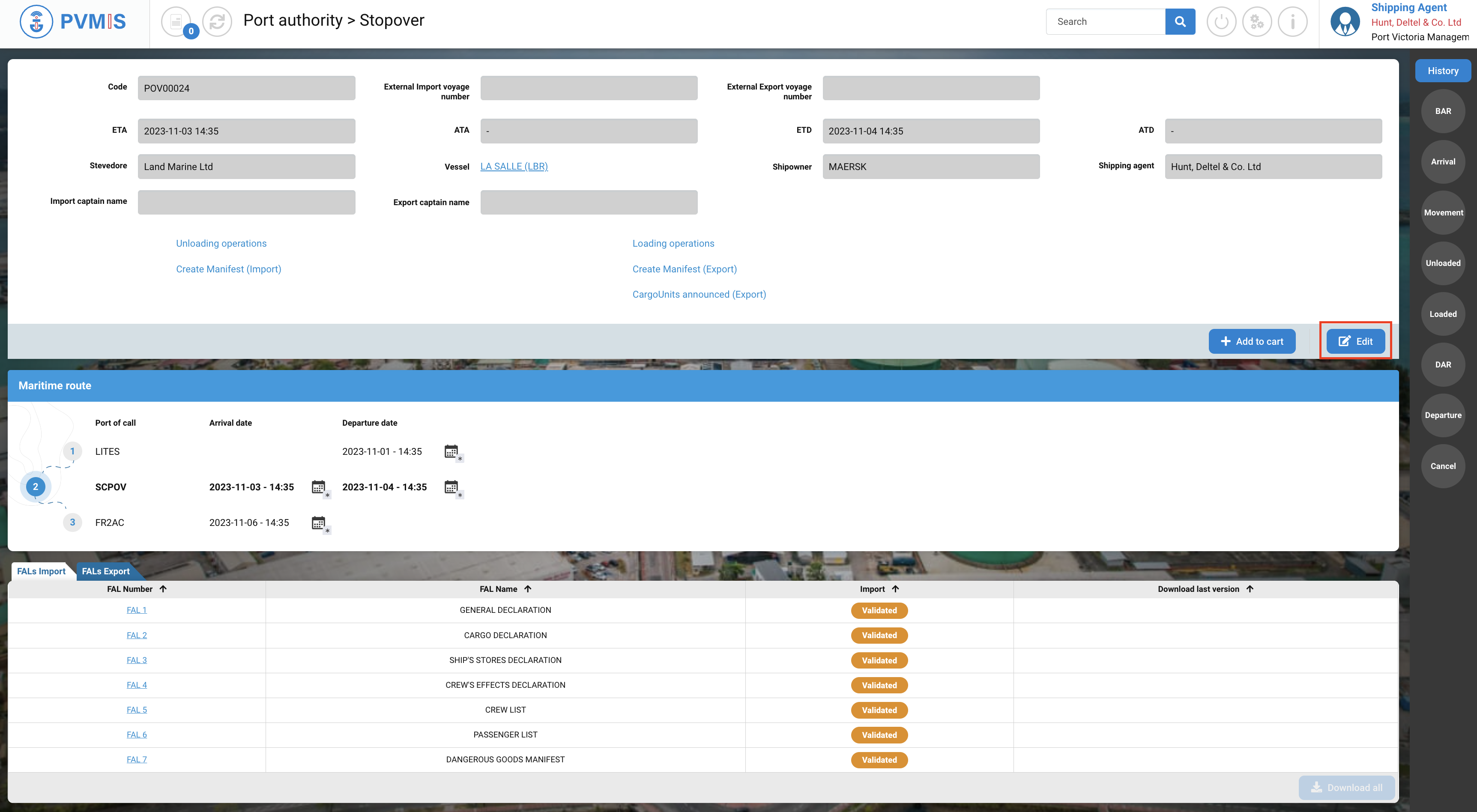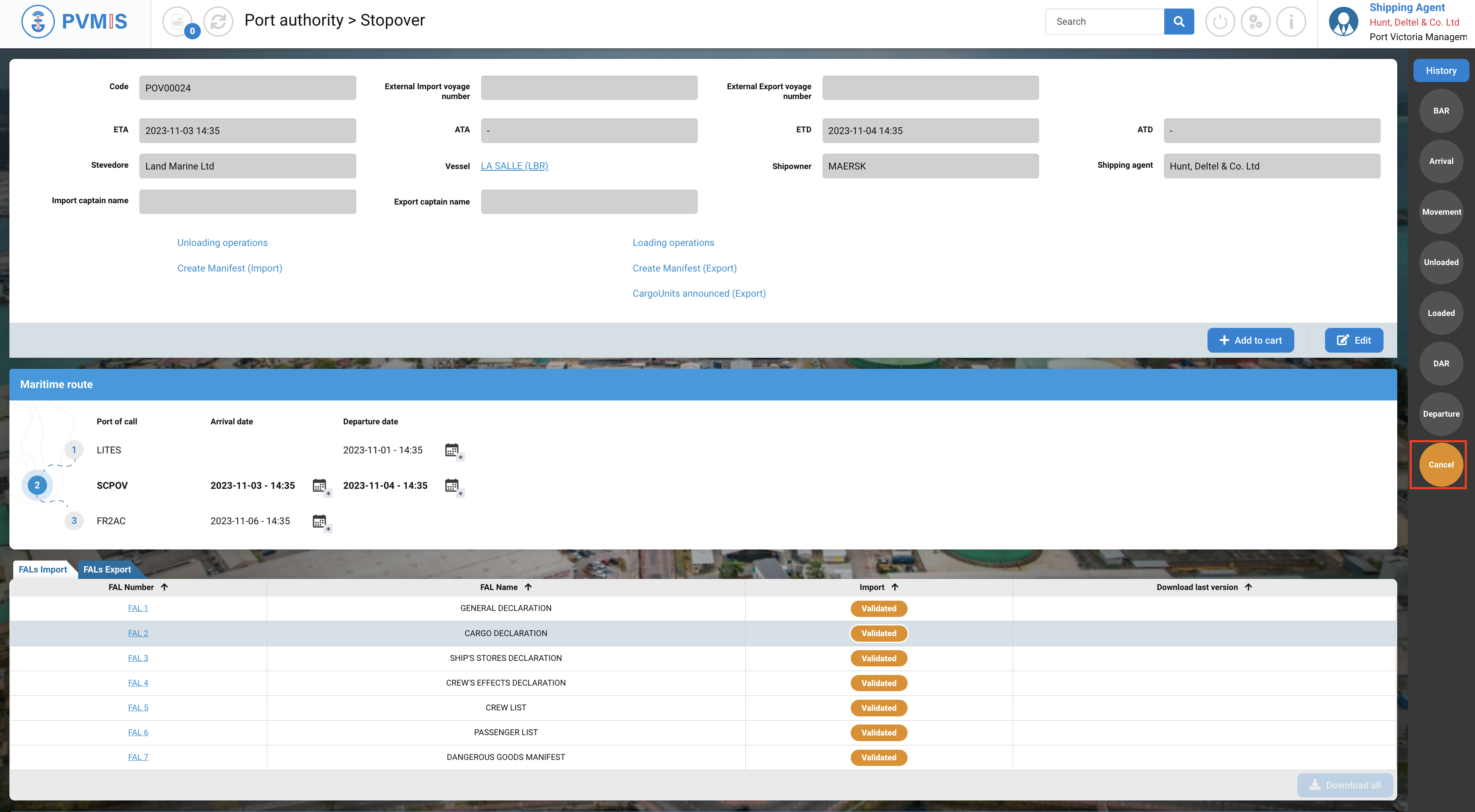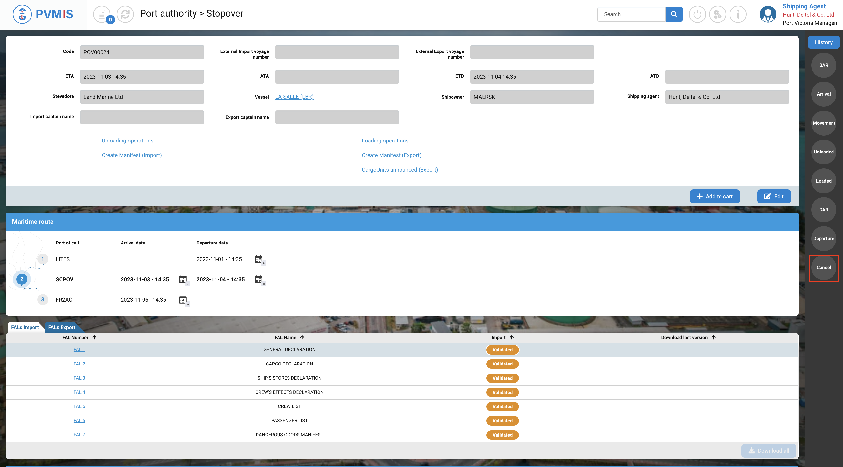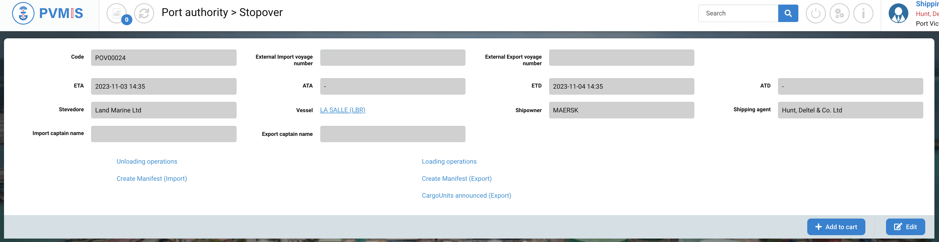 A shipping agent who is not named on the stopover will only be able to consult the Detail Stopover section.