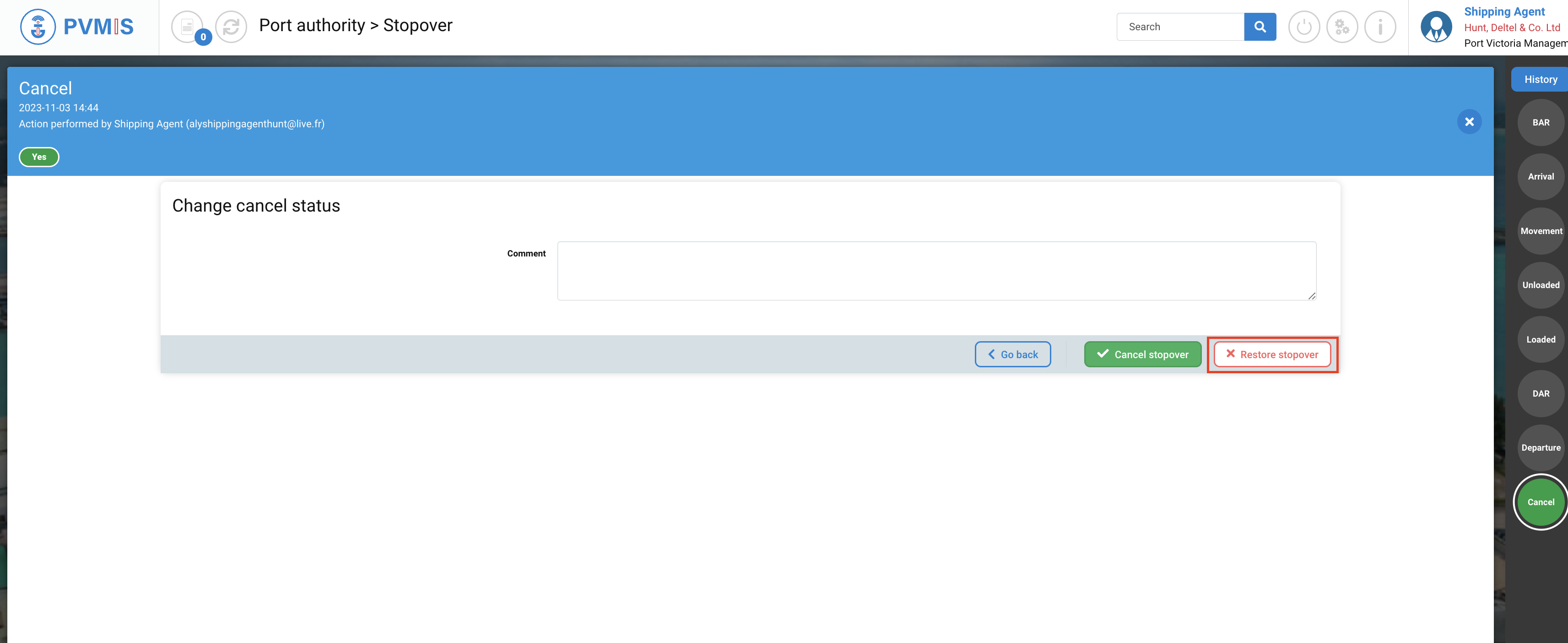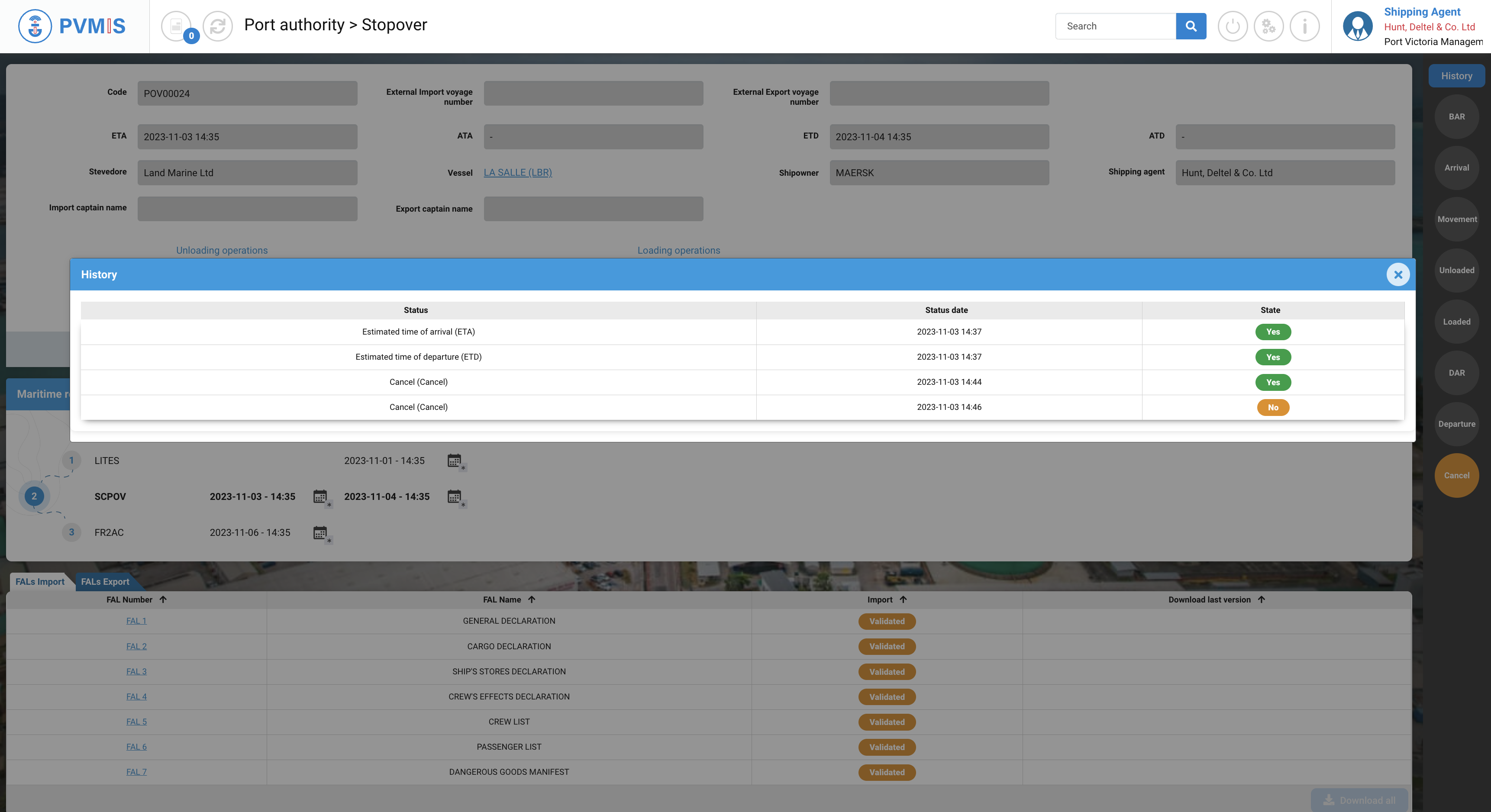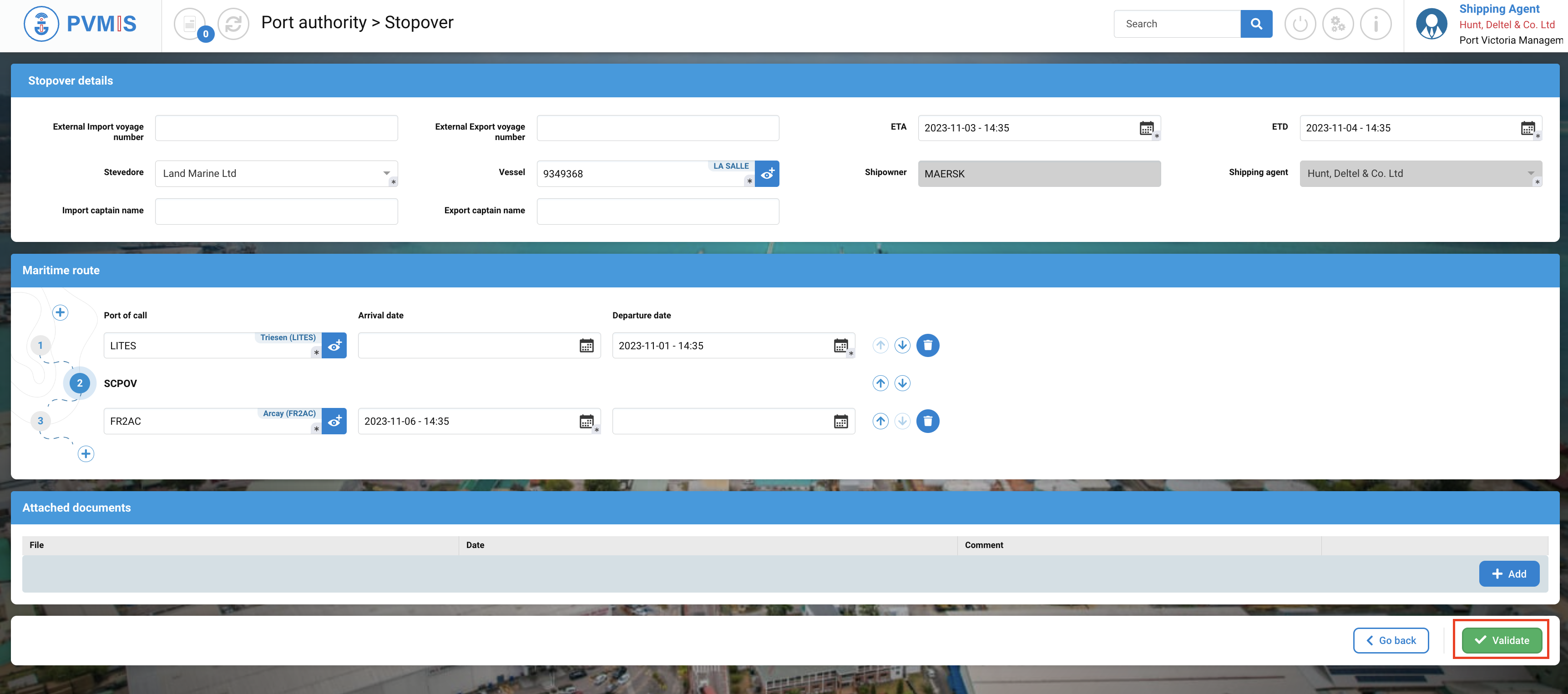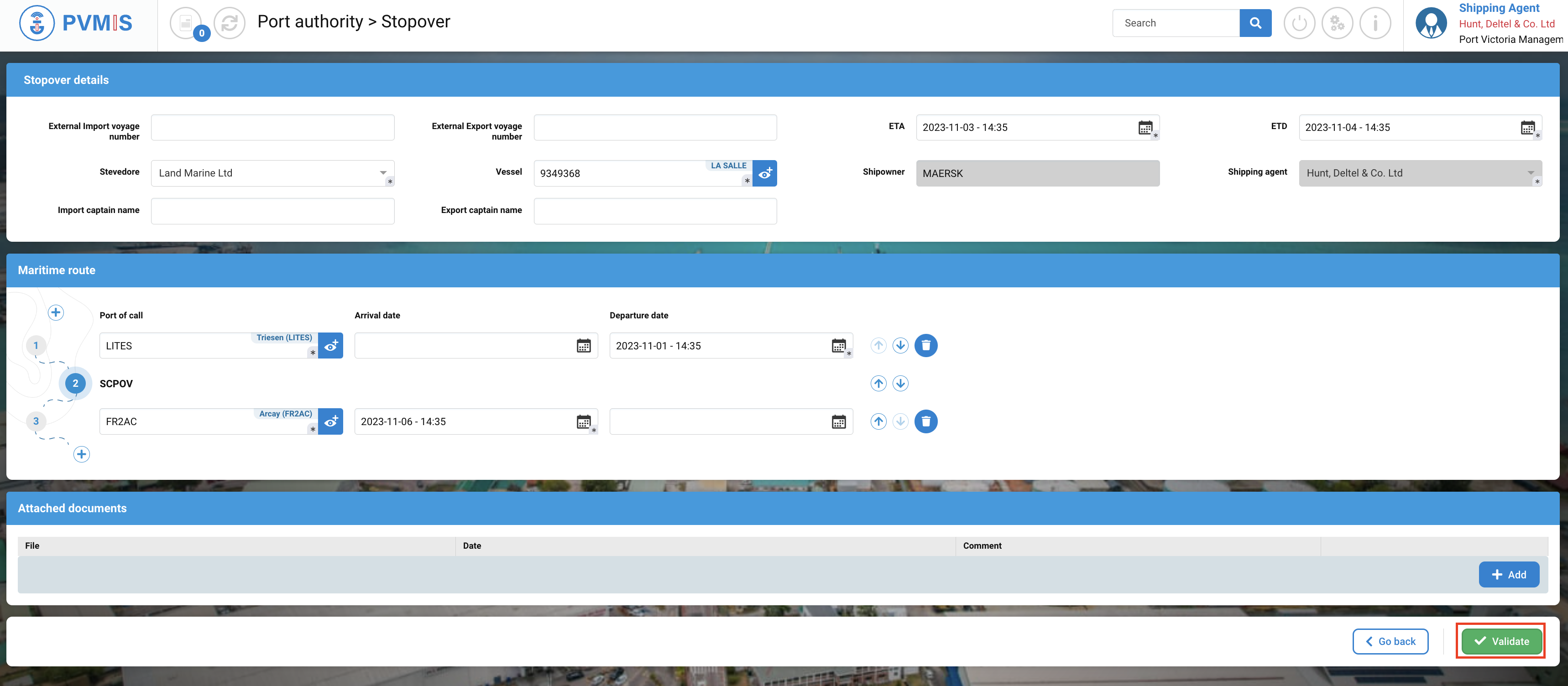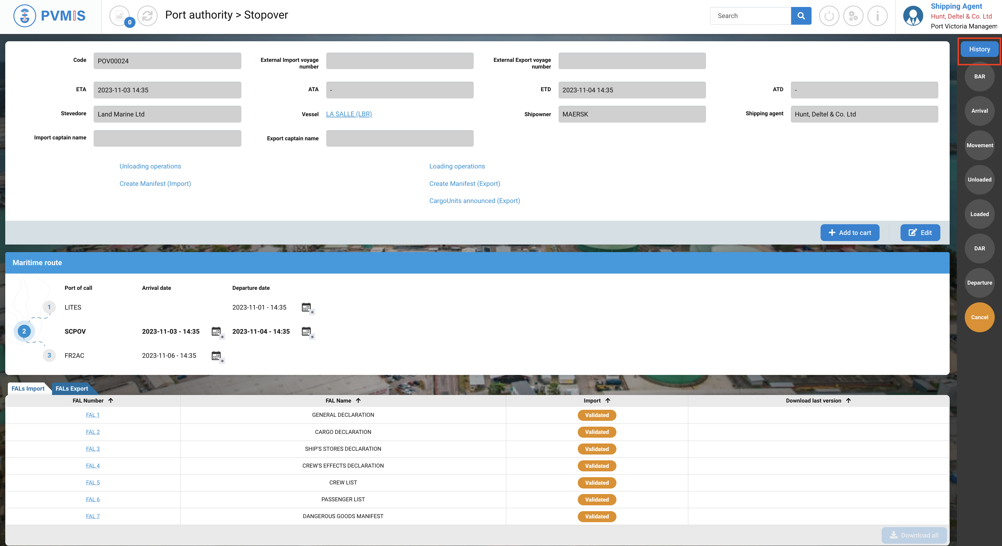 A shipping agent who is not named on the stopover will only be able to consult the Detail Stopover section.