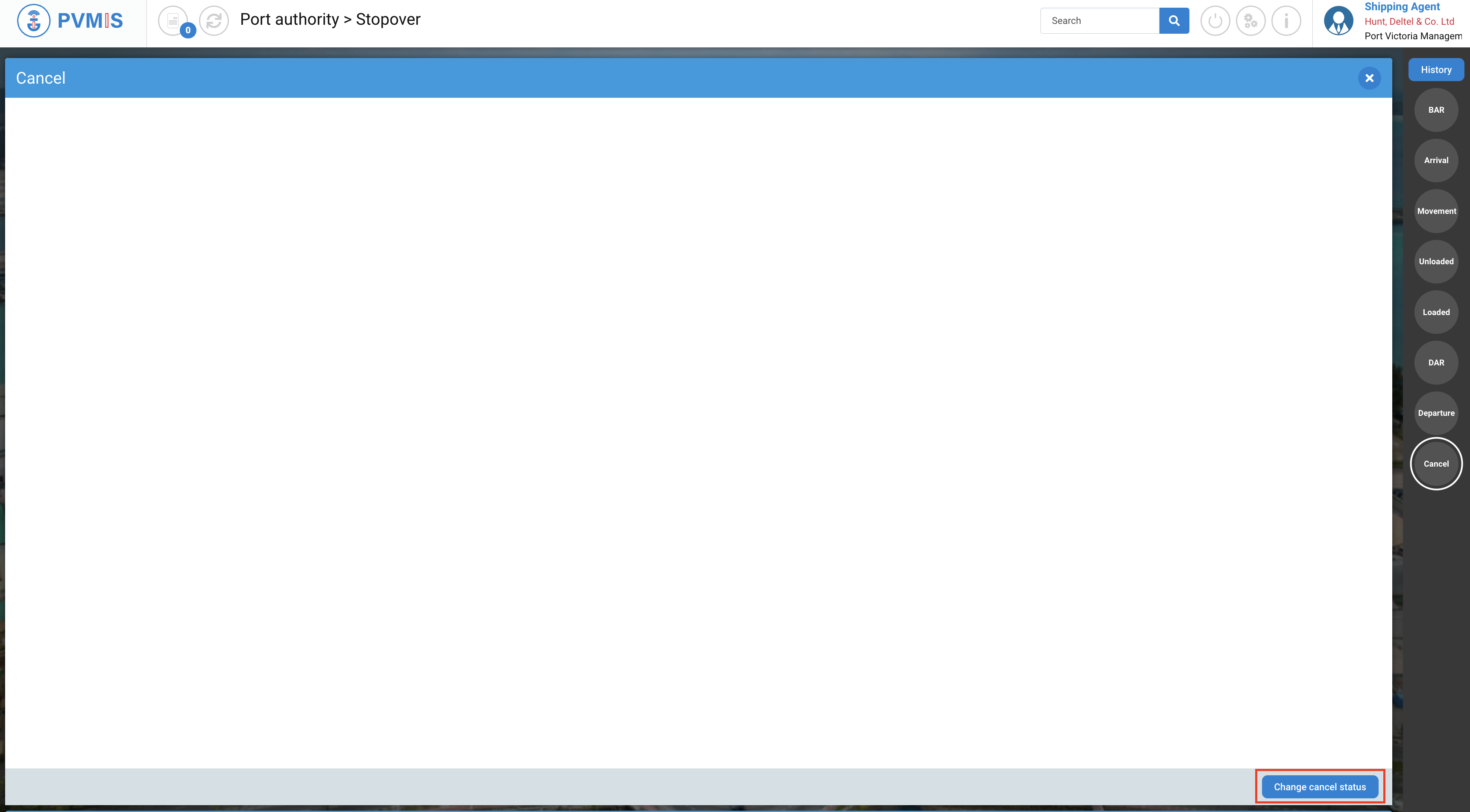 To cancel a stopover, click on “Stopovers” in the Harbor Master’s Office section: