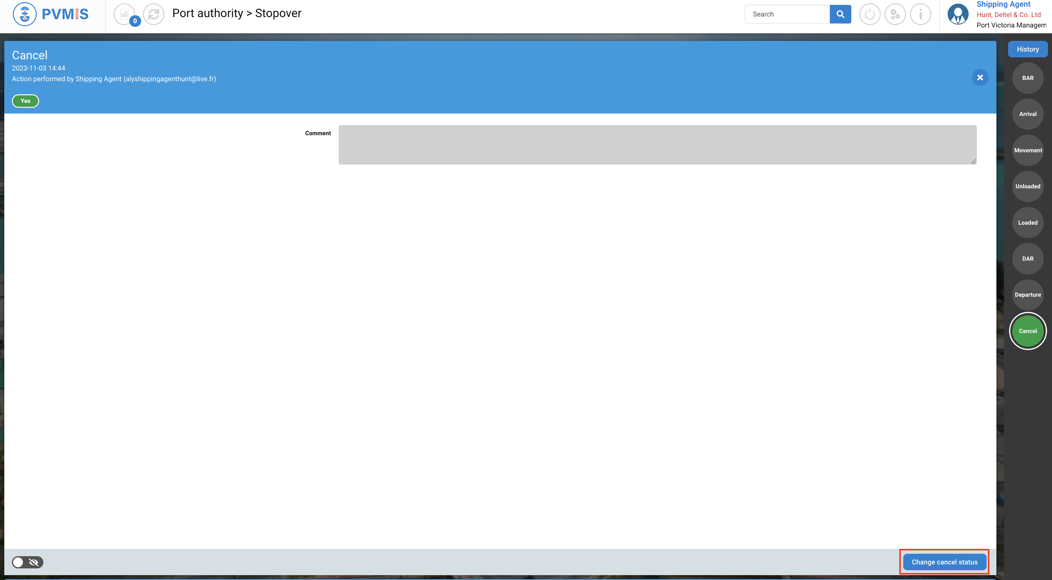 Click on Change cancel status button: